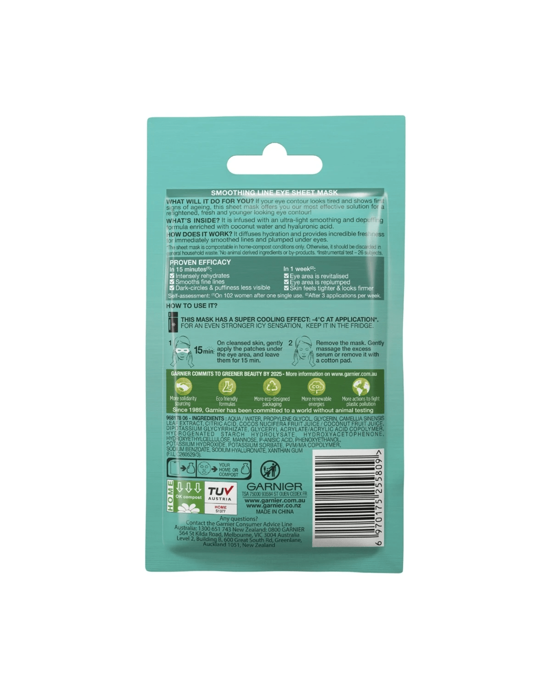 Garnier SkinActive Hydra Bomb Eye Sheet Mask 6g - Hyaluronic Acid and Coconut Water