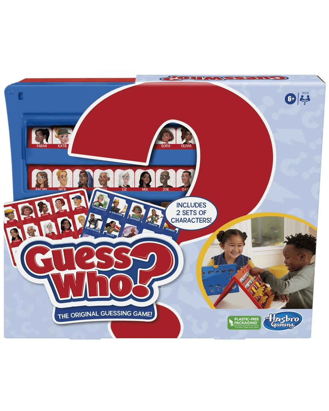 Bring back childhood memories and introduce 'the original guessing game' to your kids and grandkids. With the Guess Who? game, each player chooses a mystery character card and then using yes or no questions, they try to figure out the other player's mystery person. This edition features character art and most character names not seen in other editions such as hat-wearing Sam, Amy with glasses, and Al with the big white beard! Challenge opponents to a series of games, or up the challenge by not asking if the mystery person is a boy or a girl until the third turn. The Guess Who? game is a great indoor activity for kids ages 6 and up.