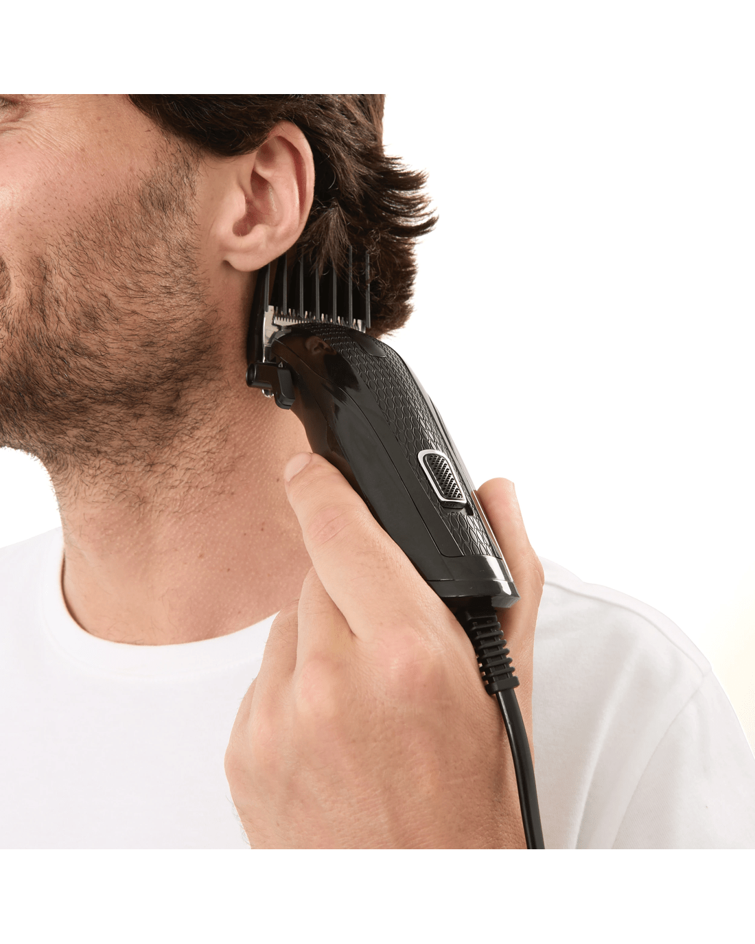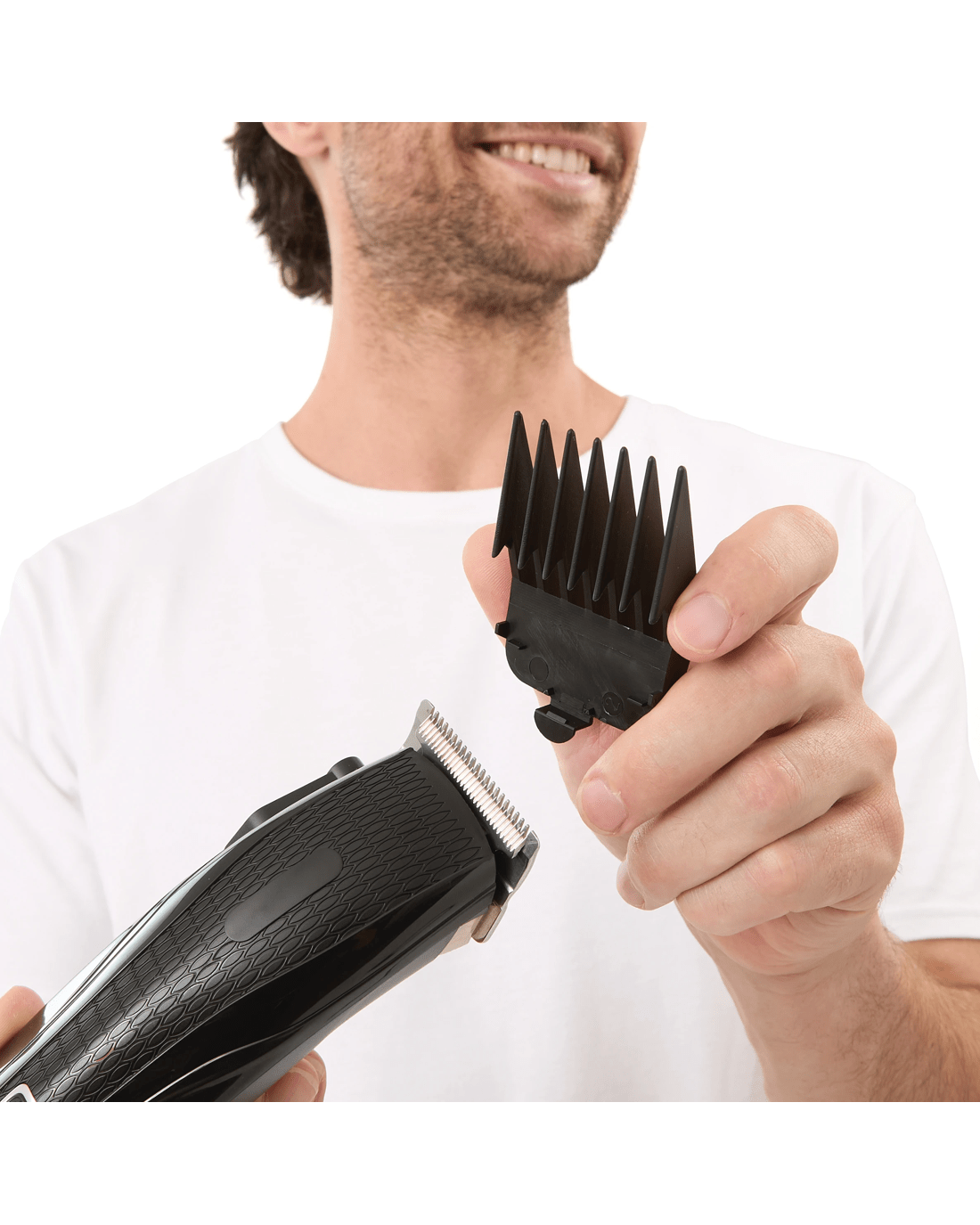 - Includes 6 x comb attachments (length 3/ 6/ 9/ 12mm/ Left and right ear guide), 1 x cleaning brush, 1 x neck brush, 2 x barber comb, 6 x section clips, 1 x scissors and 1 x barber cape