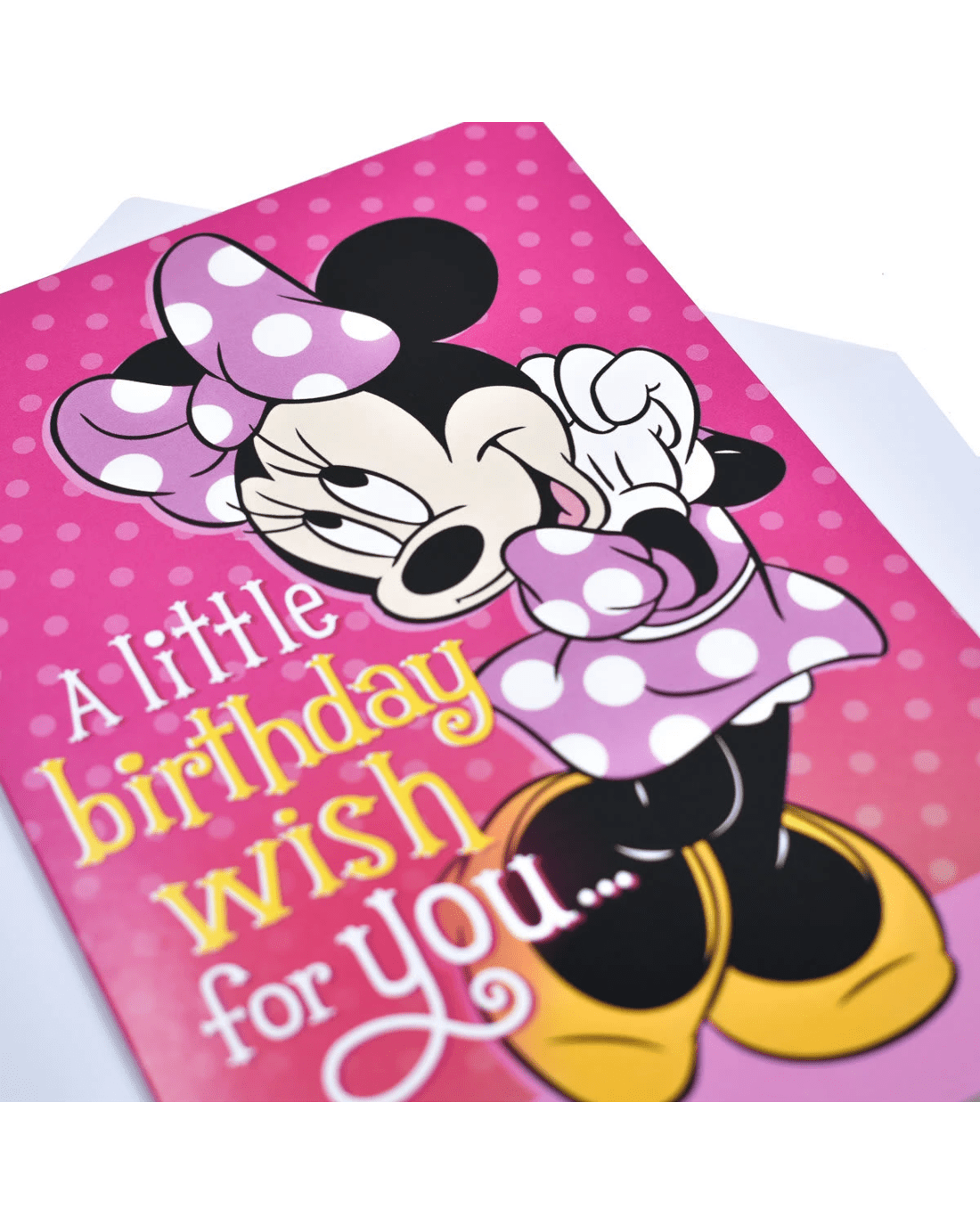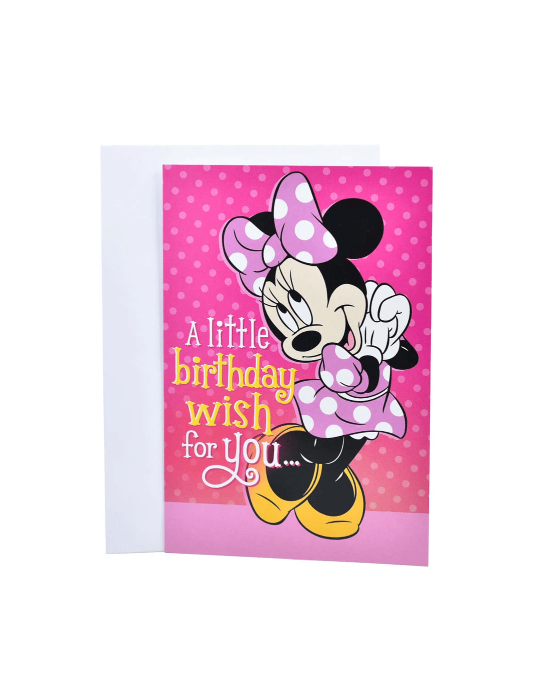 • The cover features a pretty Minnie Mouse print and the message 'A little birthday wish for you...' on a pink polka-dot background