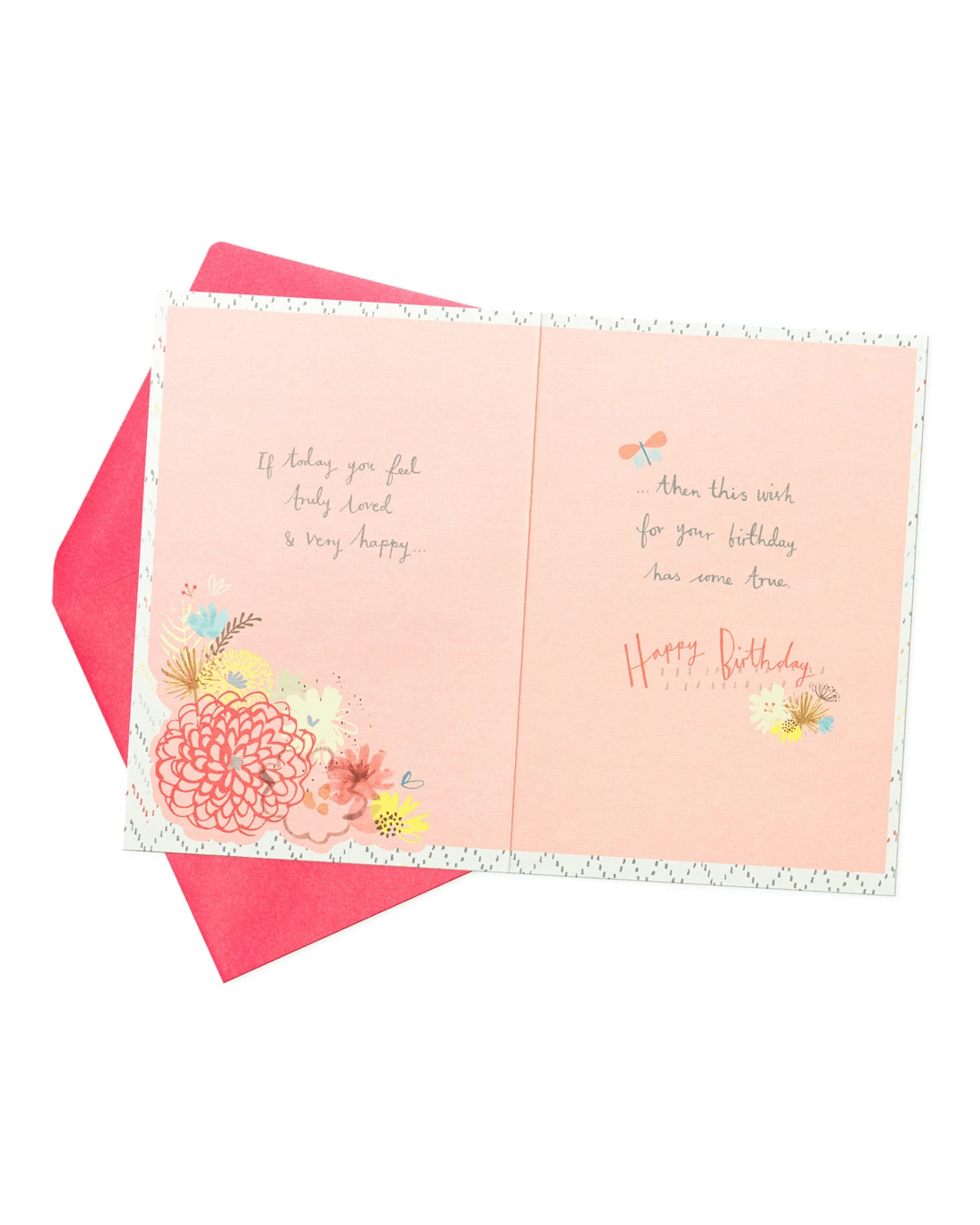 • The inside message reads: If today you feel truly loved & happy... ... then this wish for your birthday has come true. Happy birthday.