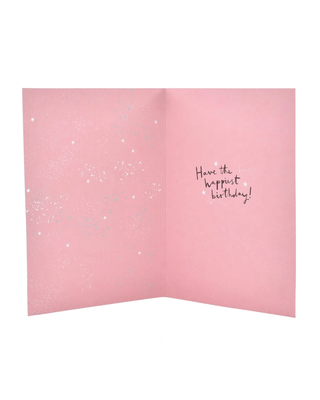 • The inside of the card is illustrated with stars and features the message 'Have the happiest birthday'