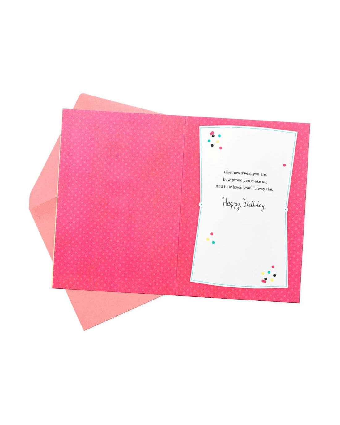 • Includes a coordinating pink envelope