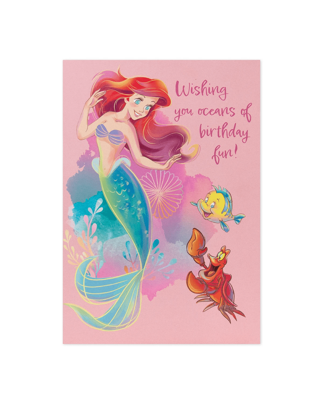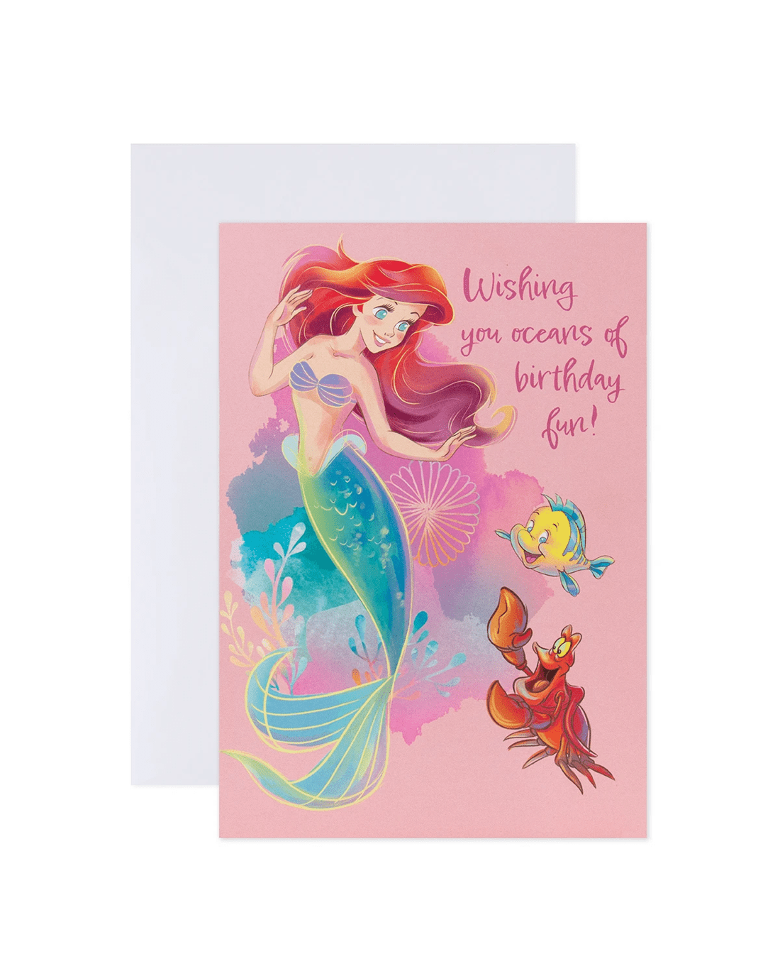 - The front of the card features The Little Mermaid and says, 'Wishing you oceans of birthday fun!'