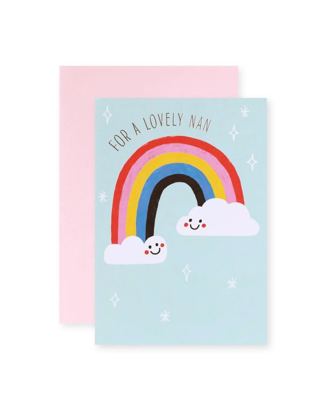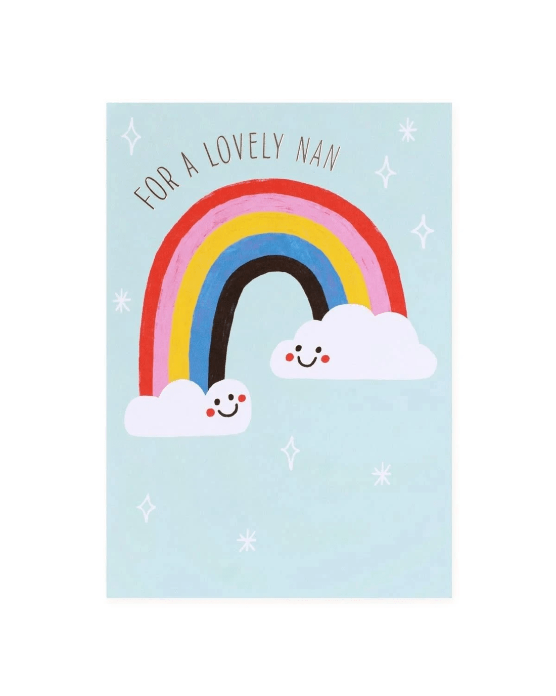 A charming and colourful Hallmark card featuring a bright rainbow and cheerful clouds, making it a warm and joyful tribute to a wonderful Nan.