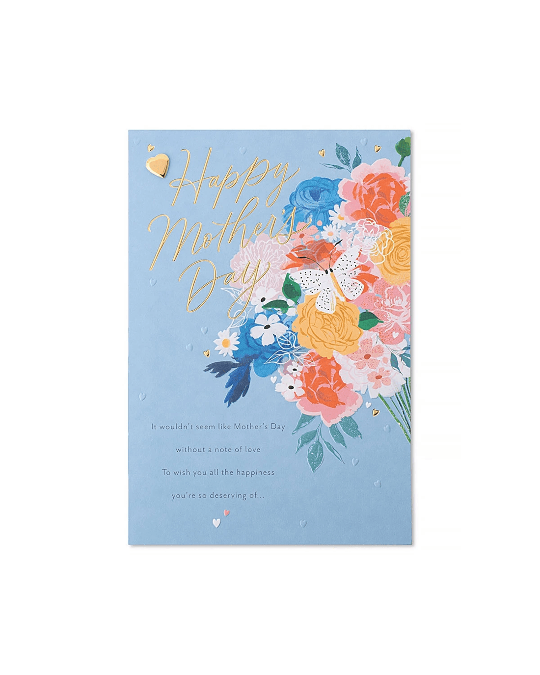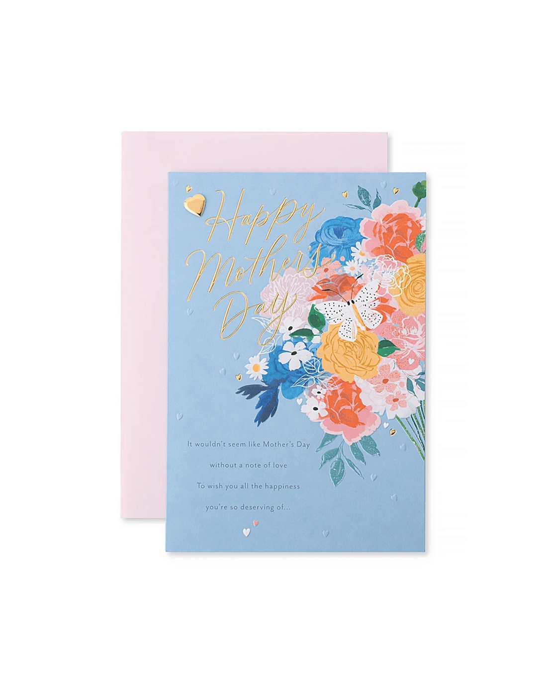 • The front of the card reads, 'Happy Mother's Day. It wouldn't seem like Mother's Day without a note of love to wish you all the happiness you're so deserving of…'