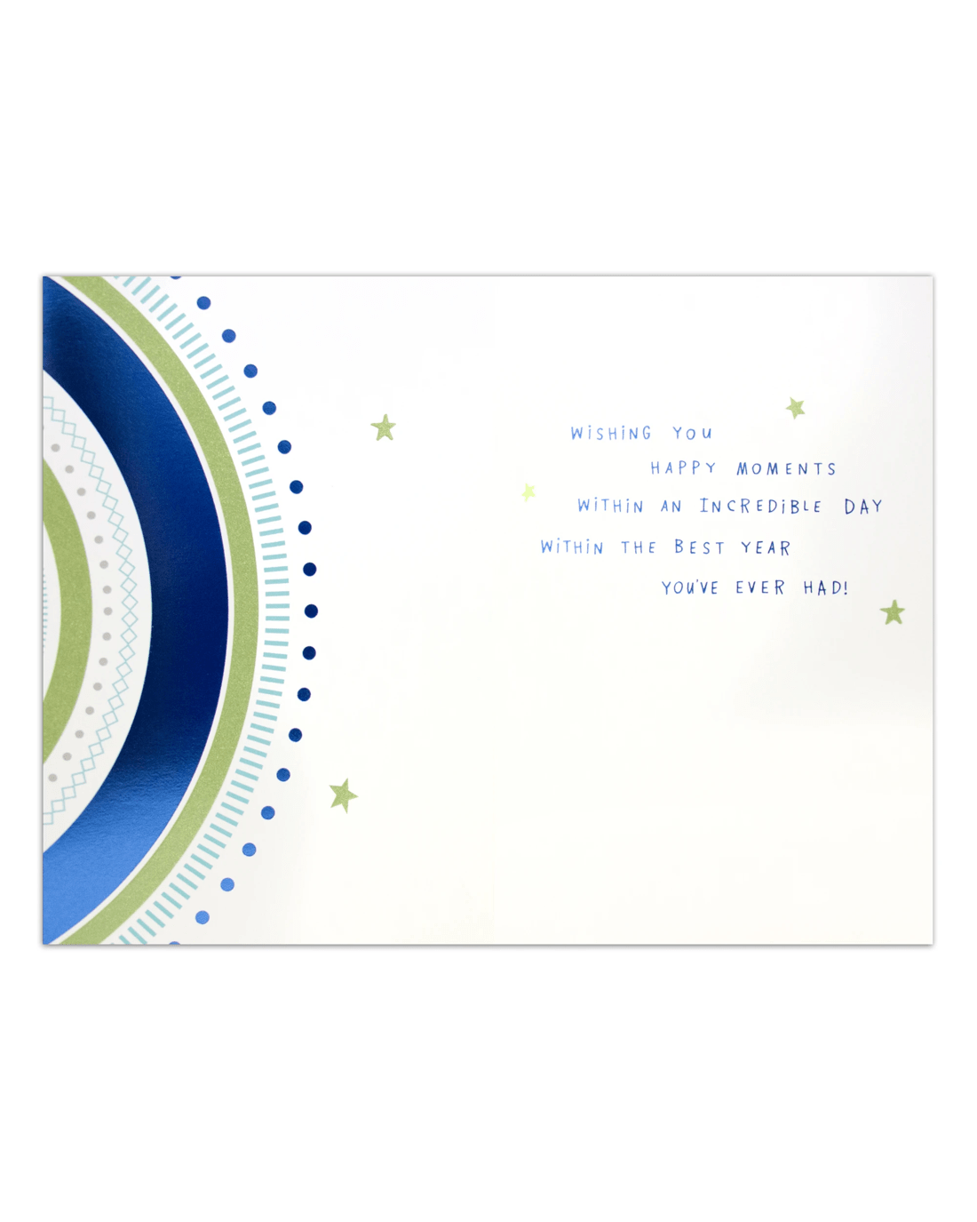 Celebrate all the happy moments with this colourful birthday card from Hallmark's Signature collection.