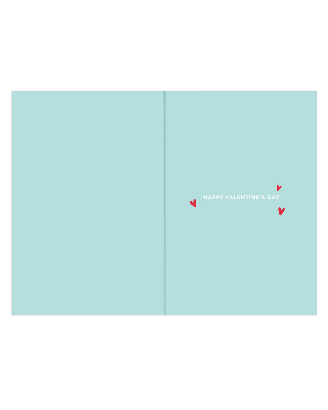 - The inside of the card features illustrations of red love hearts alongside the message 'HAPPY VALENTINE'S DAY'