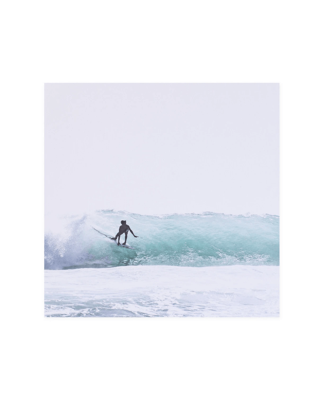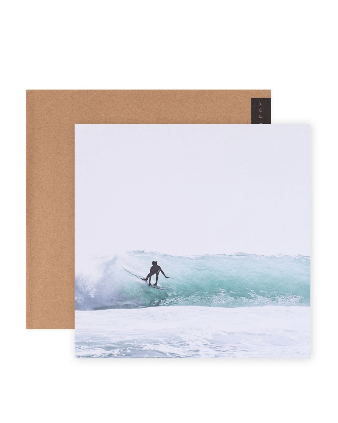 • The front of the card features a photograph taken by Australian photographer Donna Delaney of a surfer on an Indonesian beach