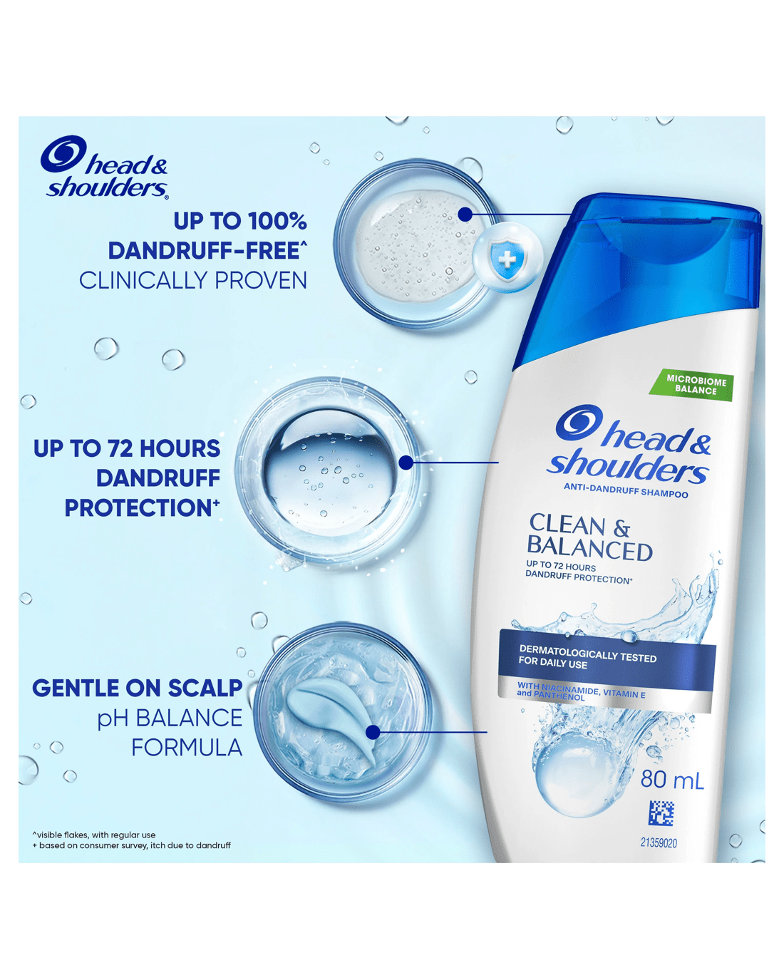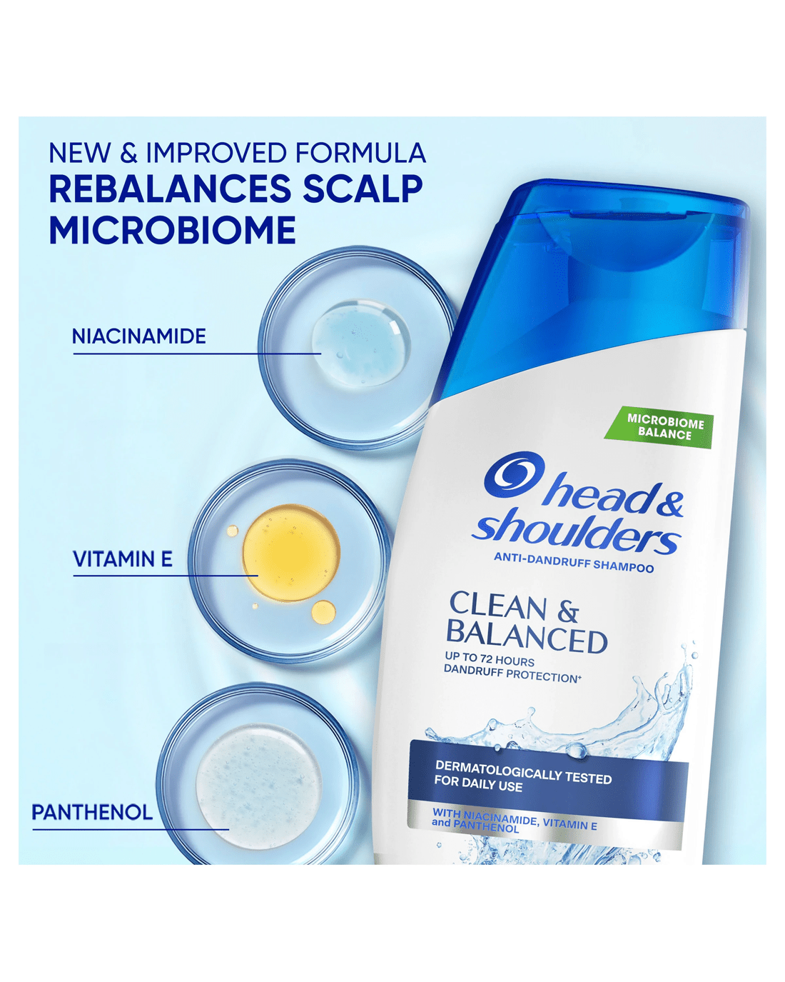 Looking for a solution to fight dandruff* with lasting effect? Use Head & Shoulders Clean & Balanced Shampoo, Australia’s #1 Anti Dandruff Shampoo^ and Dermatologists’ Recommended Brand+. Our clinically proven technology provides up to 100% dandruff* and itch protection**, while staying gentle on your scalp and hair. With 0% Added Paraben, Phosphate and Paraffins added, this pH balanced formula is designed for every wash as part of your haircare routine.