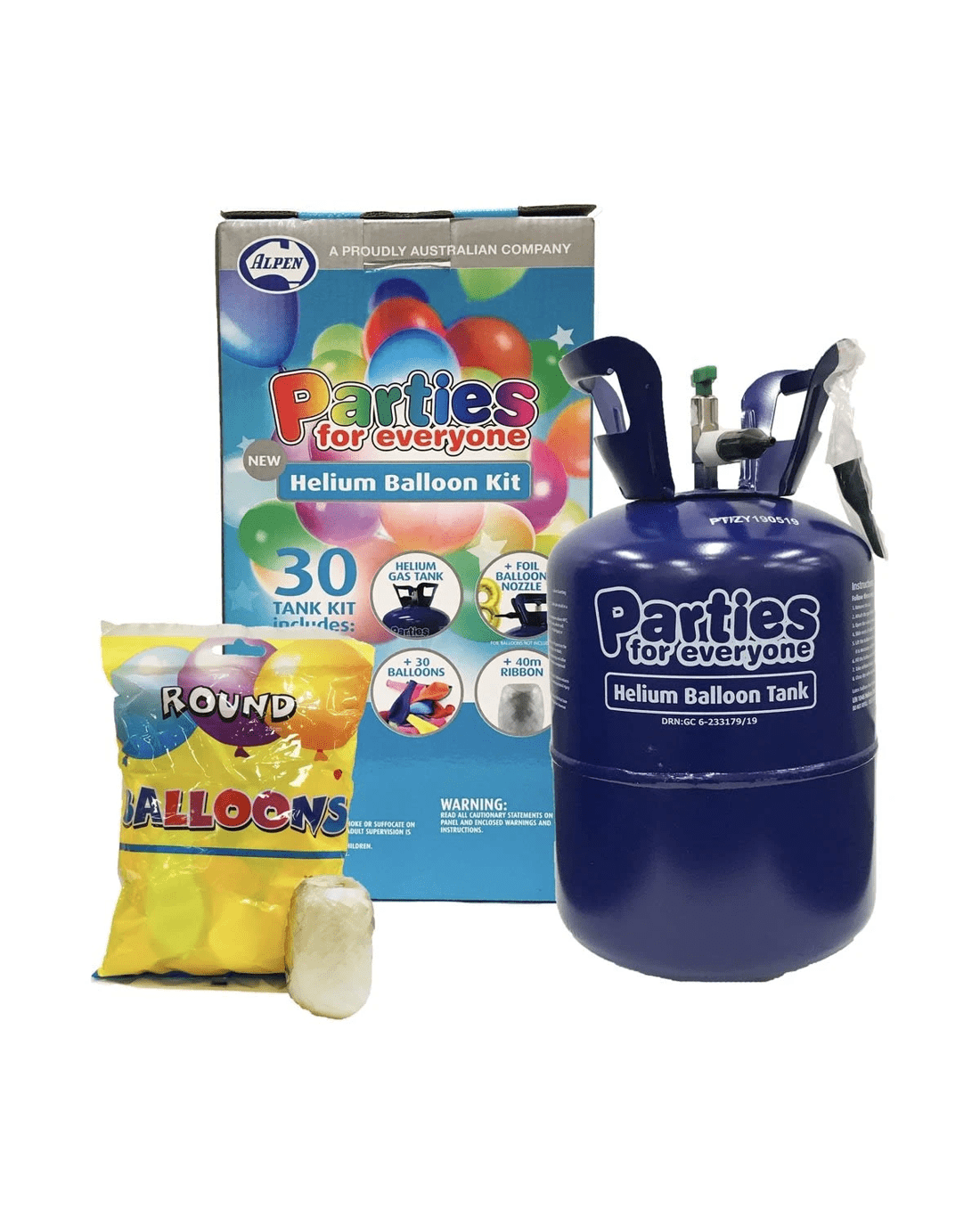 - Includes 1 helium gas tank, 1 foil balloon nozzle, 30 round balloons and 1 x 40m ribbon