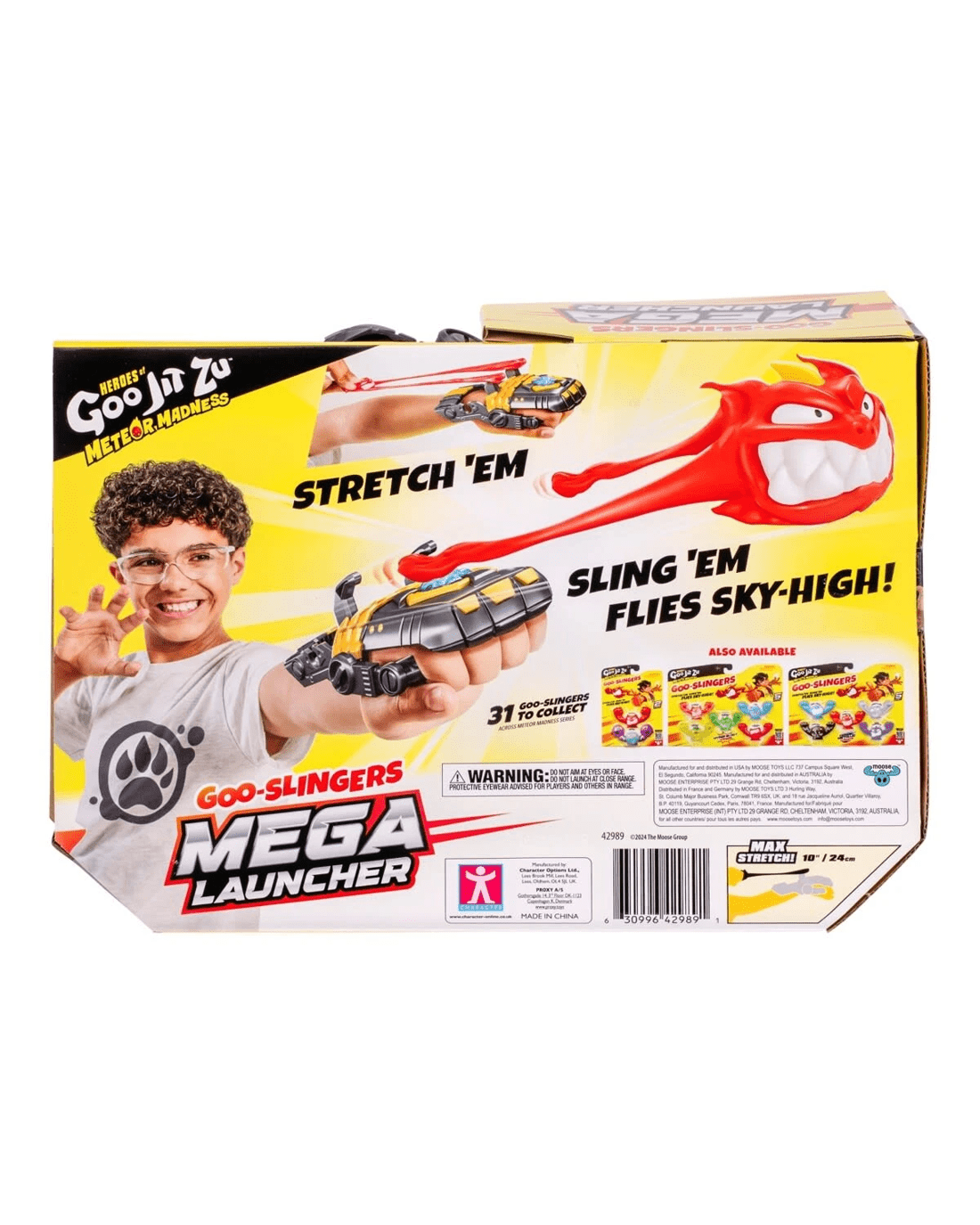 - Fire Away: Simply load your Goo-Slingers into the Mega Launcher, stretch ‘em out and sling ‘em sky-high!