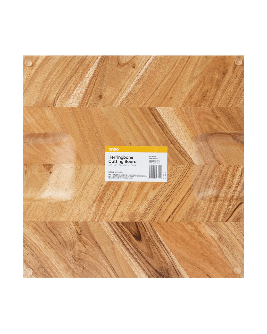 Herringbone Cutting Board Specifications- Product dimensions: 32cm (L) x 2.5cm (H) x 32cm (W)