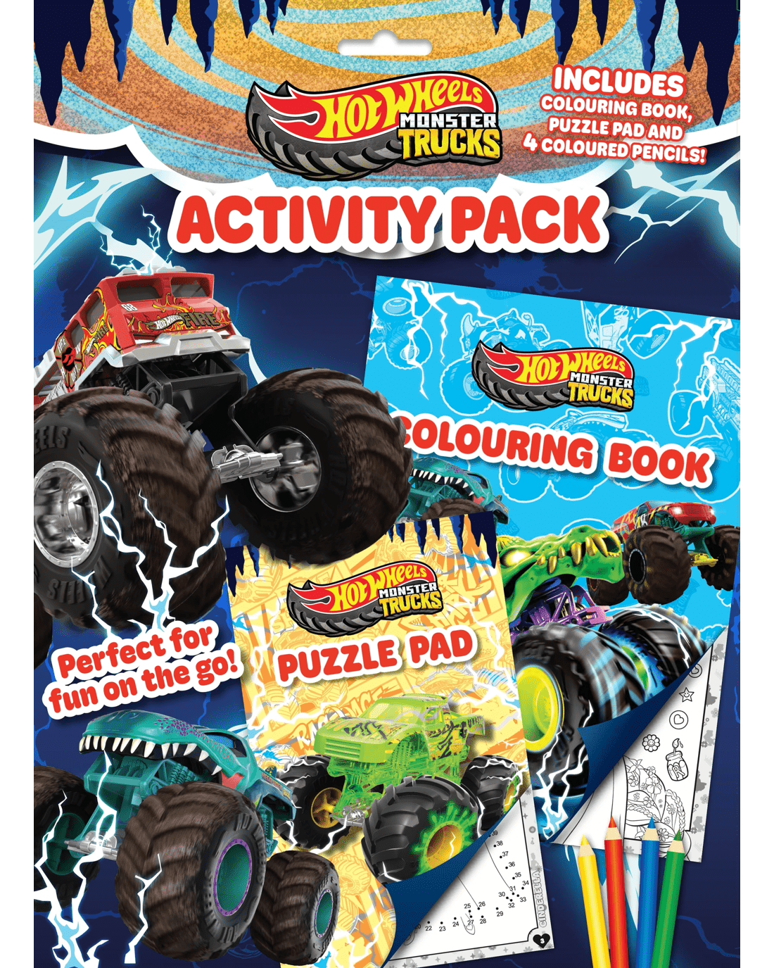 Get ready for the ride of your life with this Hot Wheels Monster Trucks Activity Pack! With a colouring book, puzzle pad and coloured pencils inside, you'll be able to crash and smash your way through every page.