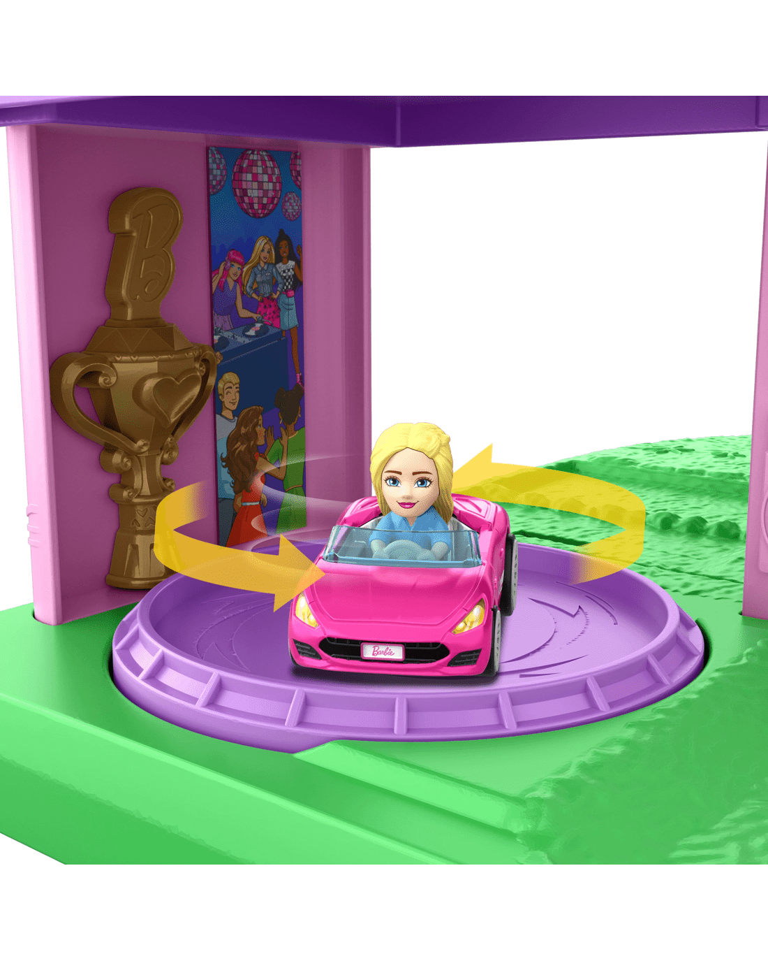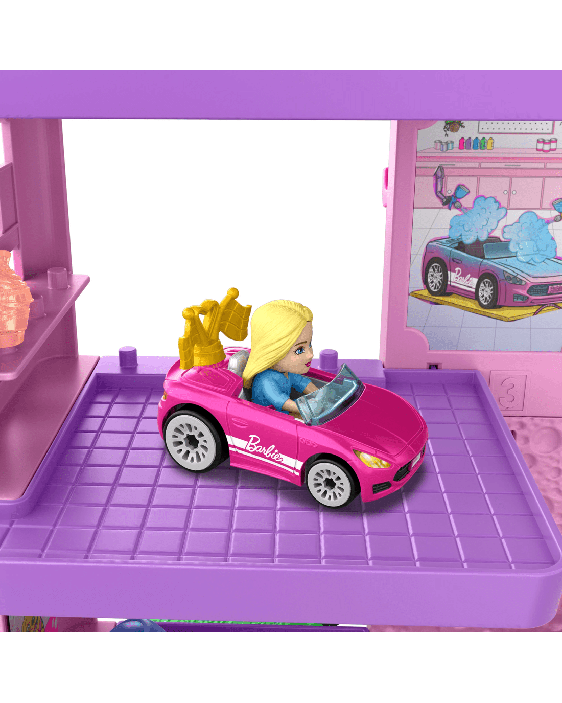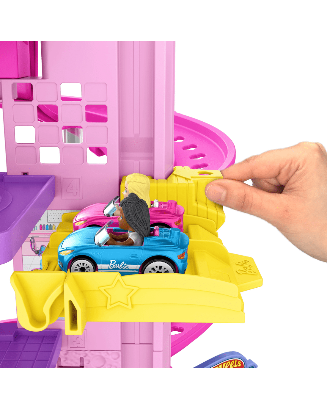 - This super cute and super pink playset includes two die-cast Hot Wheels RacerVerse vehicles that feature non-removable Barbie 'Malibu' and Barbie 'Brooklyn' figures in track- and display-ready cars