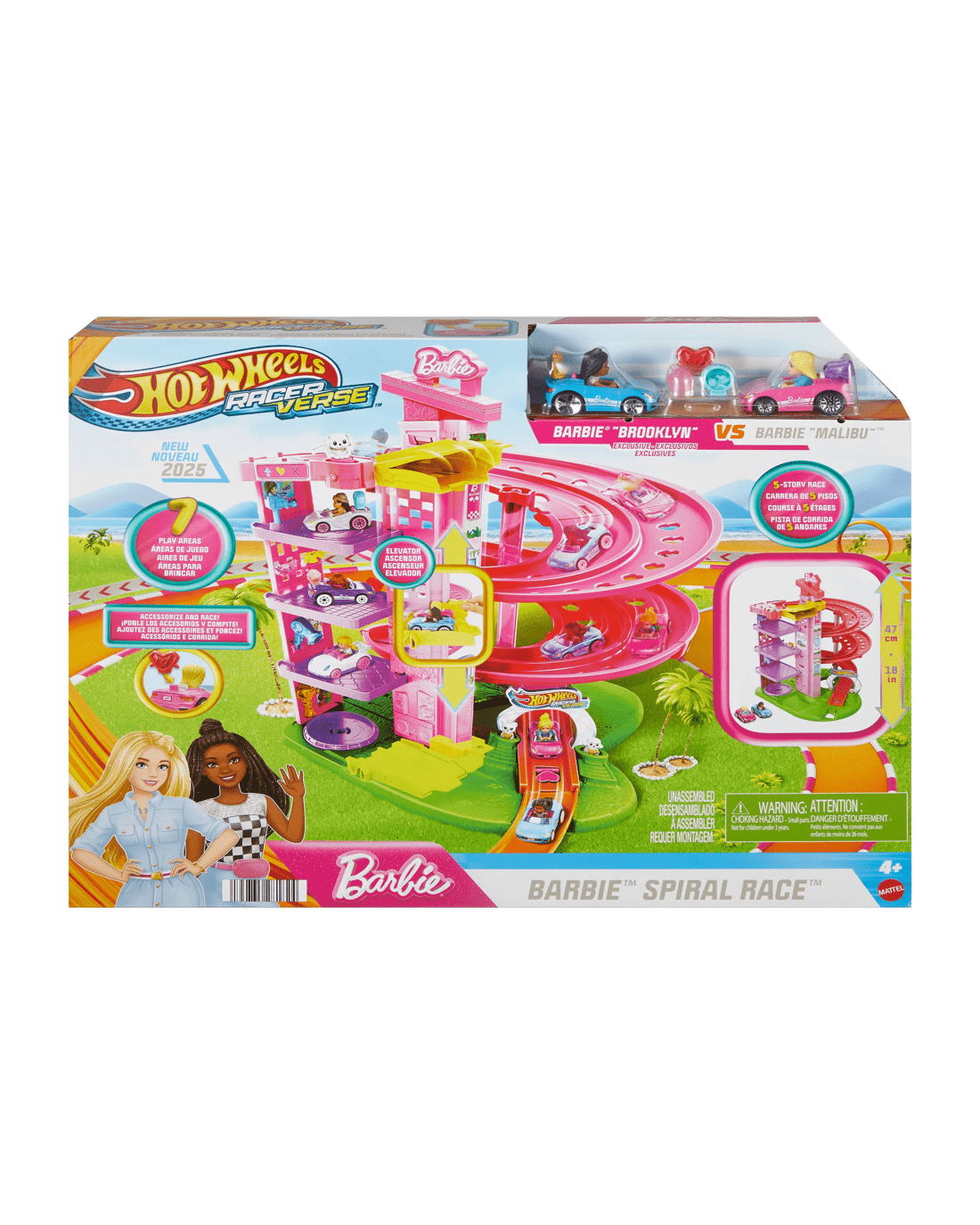 - It's off to the races with Barbie 'Malibu' and Barbie 'Brooklyn' in this 5-level Hot Wheels RacerVerse Barbie Track Set!