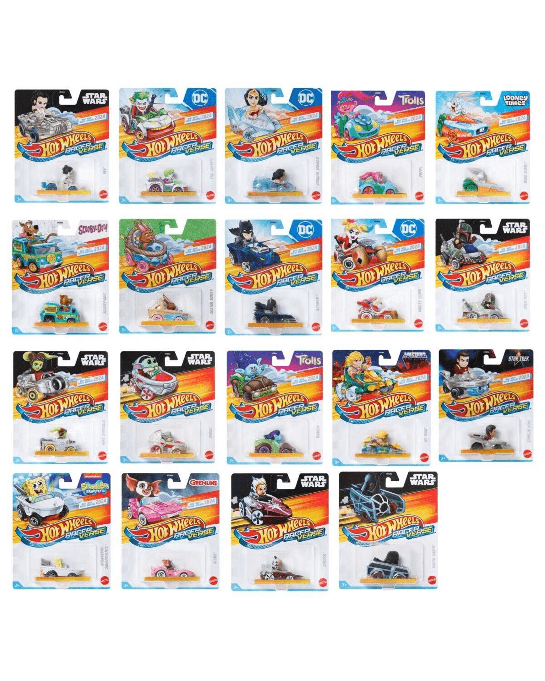 *Each sold separatelyHot Wheels RacerVerse vehicles put fan-favourite characters from legendary entertainment properties in the drivers' seats of stylised die-cast toy cars. Each vehicle is 1:64 scale, features a cool, non-removable character and is optimised for track performance. Choose from iconic figures such as Batman, Wonder Woman, Scooby Doo and more! Fans and collectors will want them all.