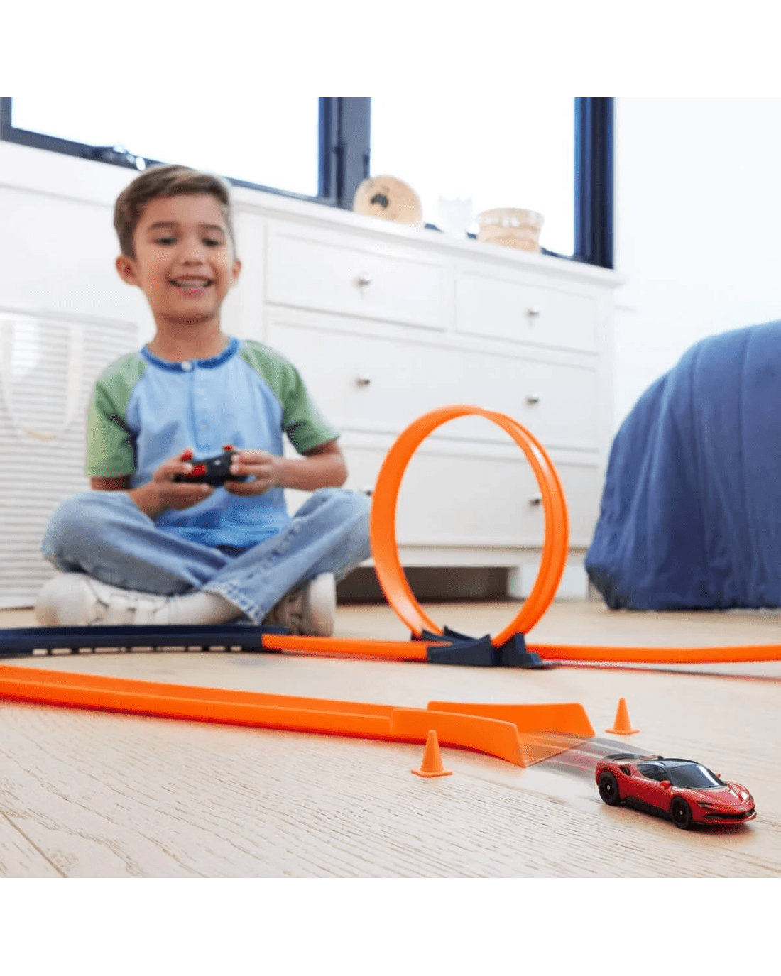 • Hit the booster on the remote to enter loops at full speed or get an extra jolt to be first across the finish line.