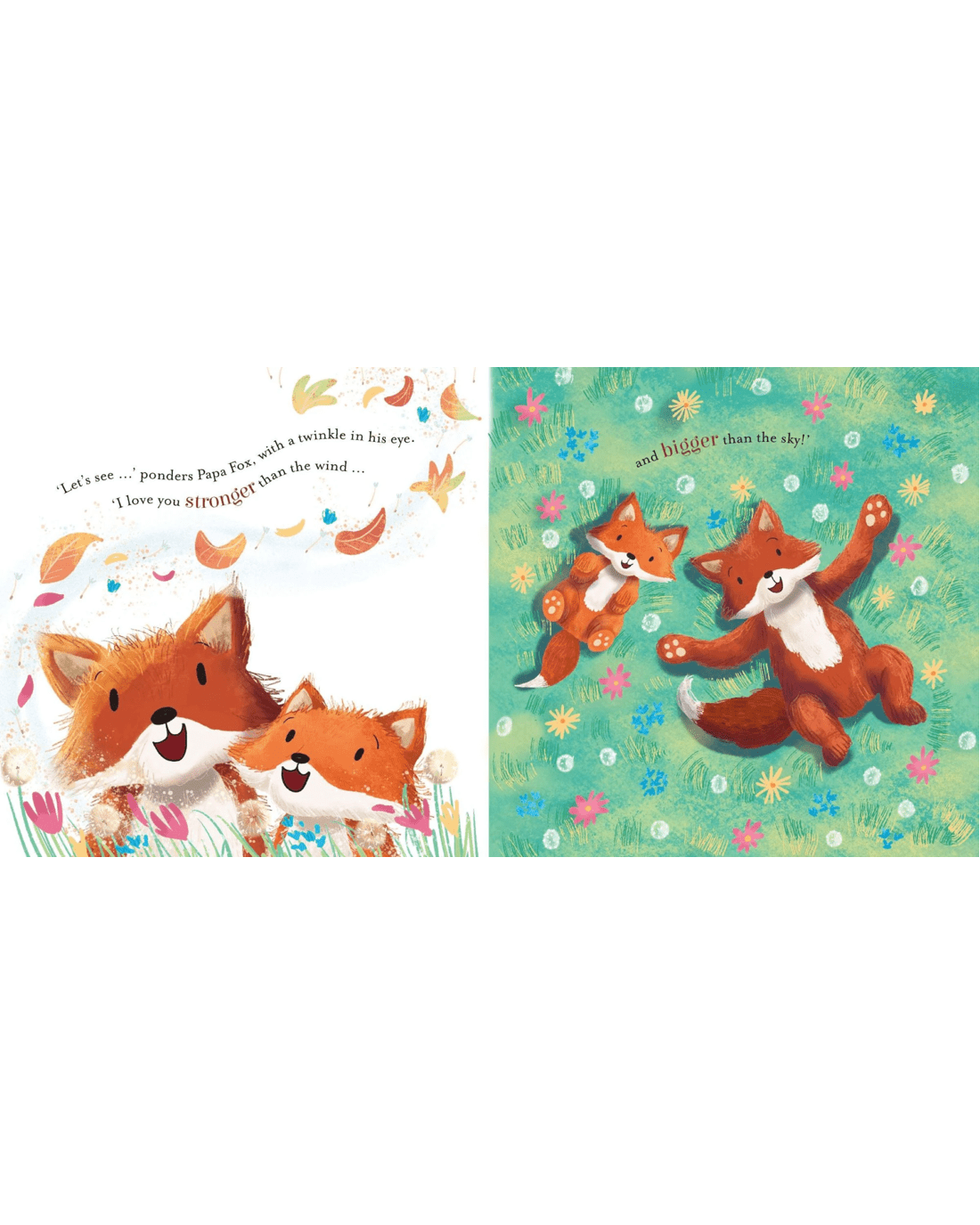 'I love you most,' says Papa Fox. 'Because I love you loads! More than when we hop like frogs and croak like noisy toads!'