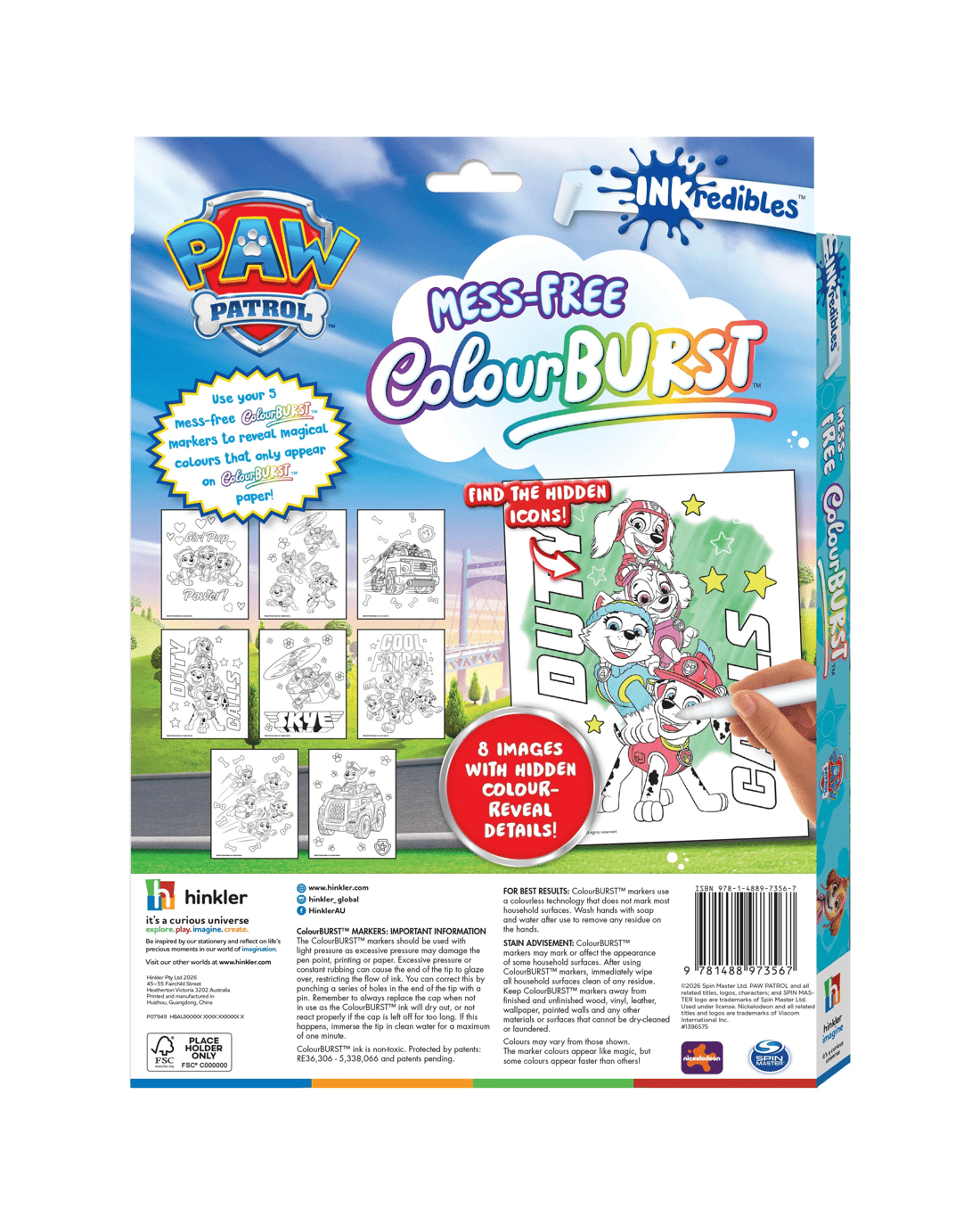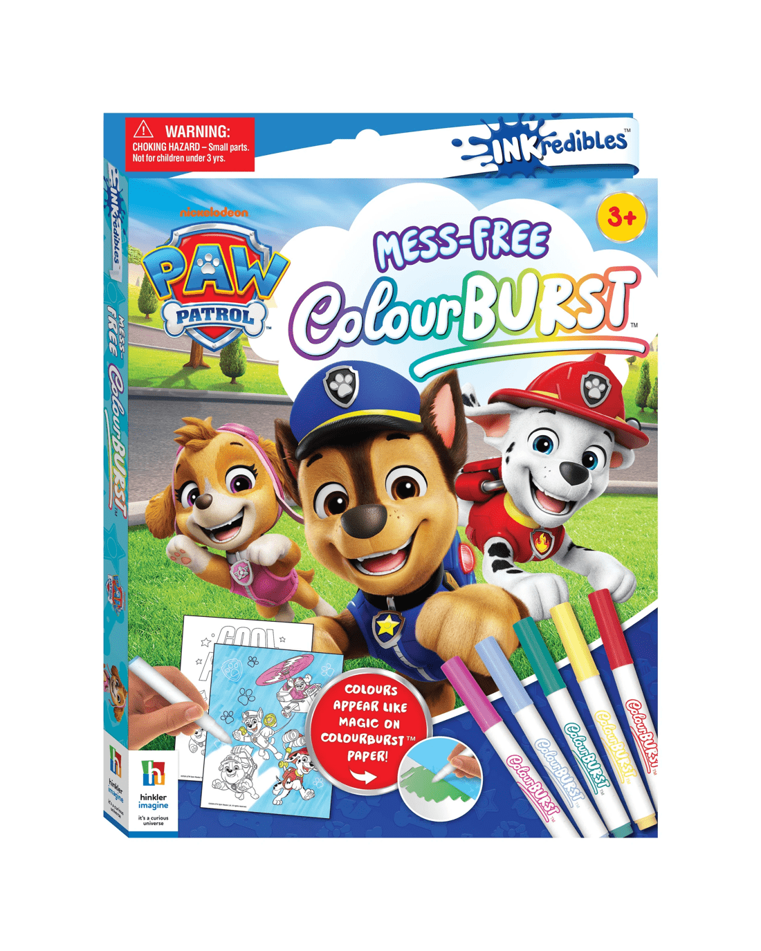 Join Chase, Skye, Marshall and the gang on a fun-filled adventure in this Inkredibles colour burst PAW Patrol! With five special colour burst markers and a colouring pad, kids can watch vibrant colours magically appear on the page. Best of all, it’s totally mess-free, so little heroes can focus on colouring adventures and nothing else!