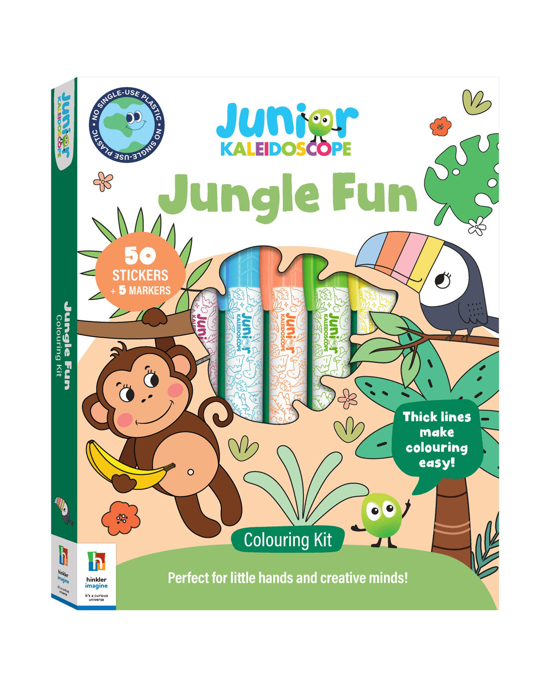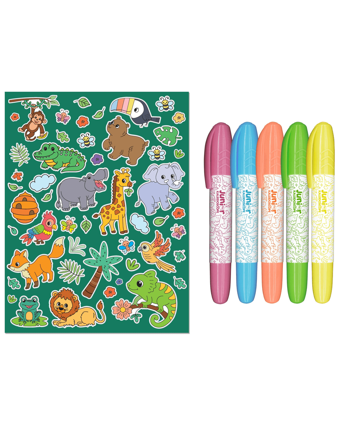 Kids will adore going on a wild colouring adventure with the Junior Kaleidoscope Colouring Kit Jungle! This enchanting kit features a 64-page colouring pad bursting with adorable jungle animals, from cheeky monkeys to majestic lions, just waiting for your little explorers! With five cool markers and over 50 fun stickers, kids can unleash their creativity and bring the jungle to life!