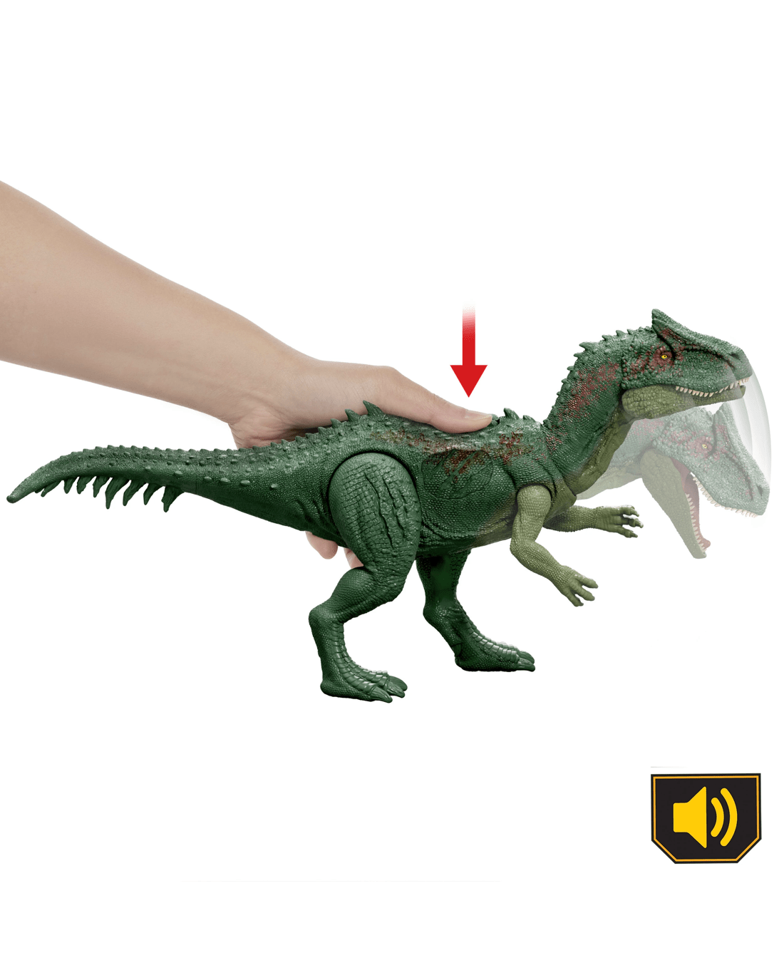 - Chomp and attack! Press the button near the neck for fierce battle play with the Allosaurus' fierce chomp attack and roars