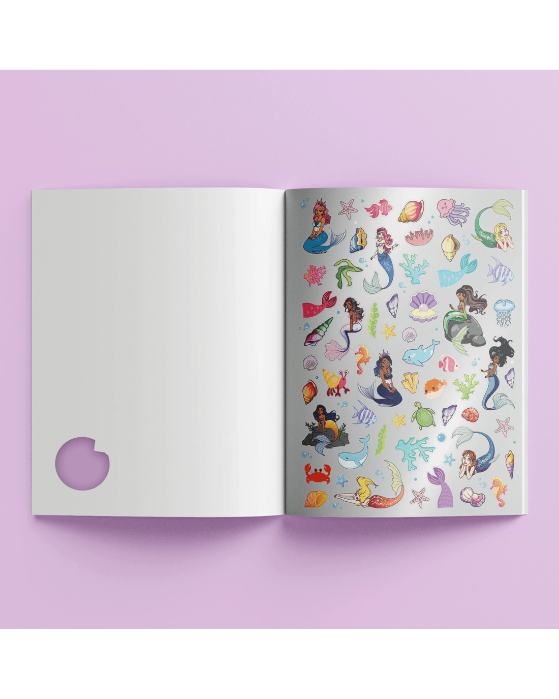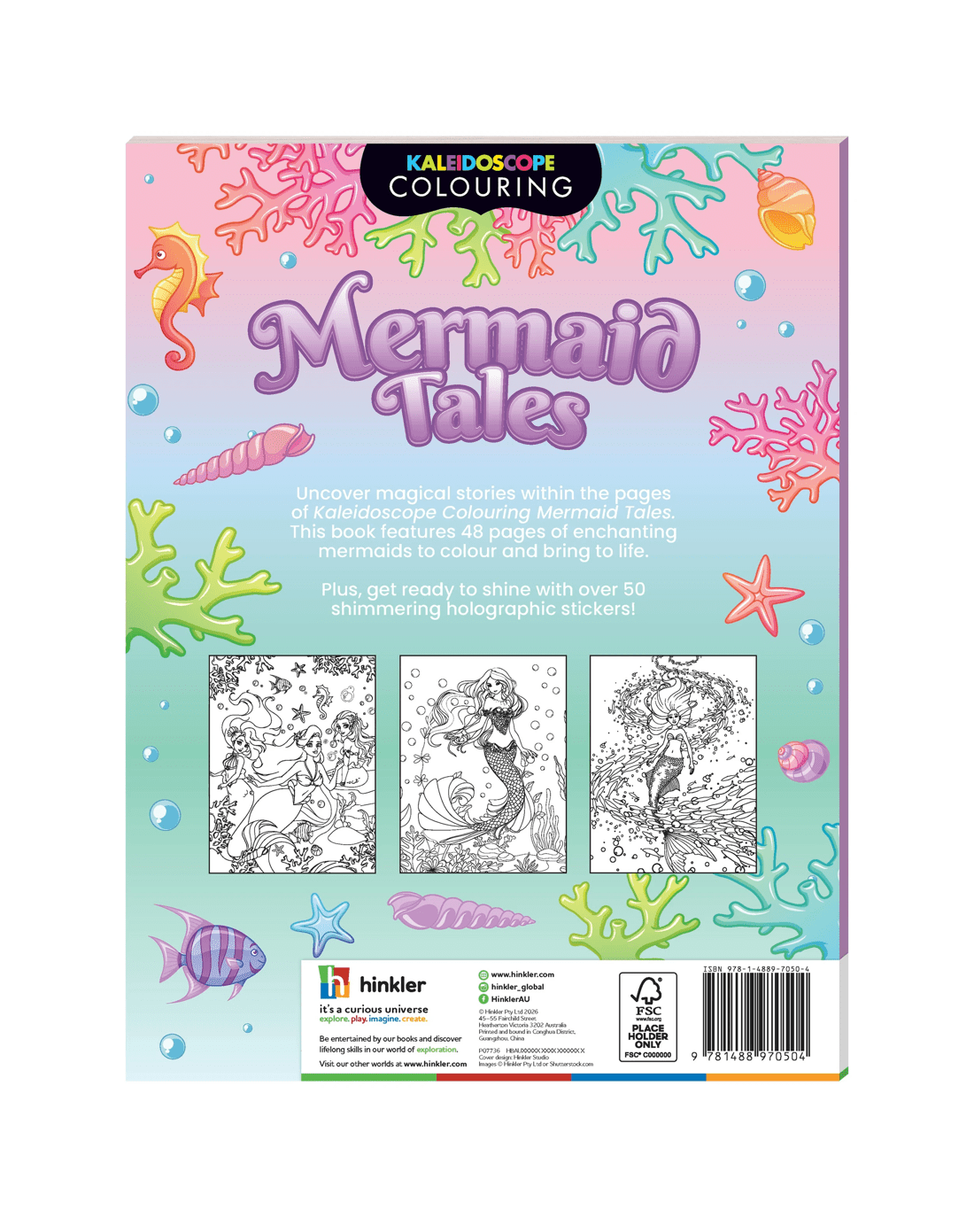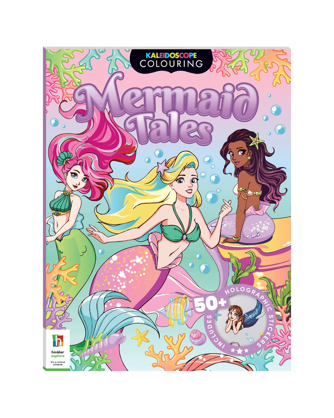 Dive deep into a world of magic and fun, where mermaids laugh and play! This book features 48 enchanting underwater scenes to colour and bring to life. Plus, get ready to shine with over 50 shimmering holographic stickers!