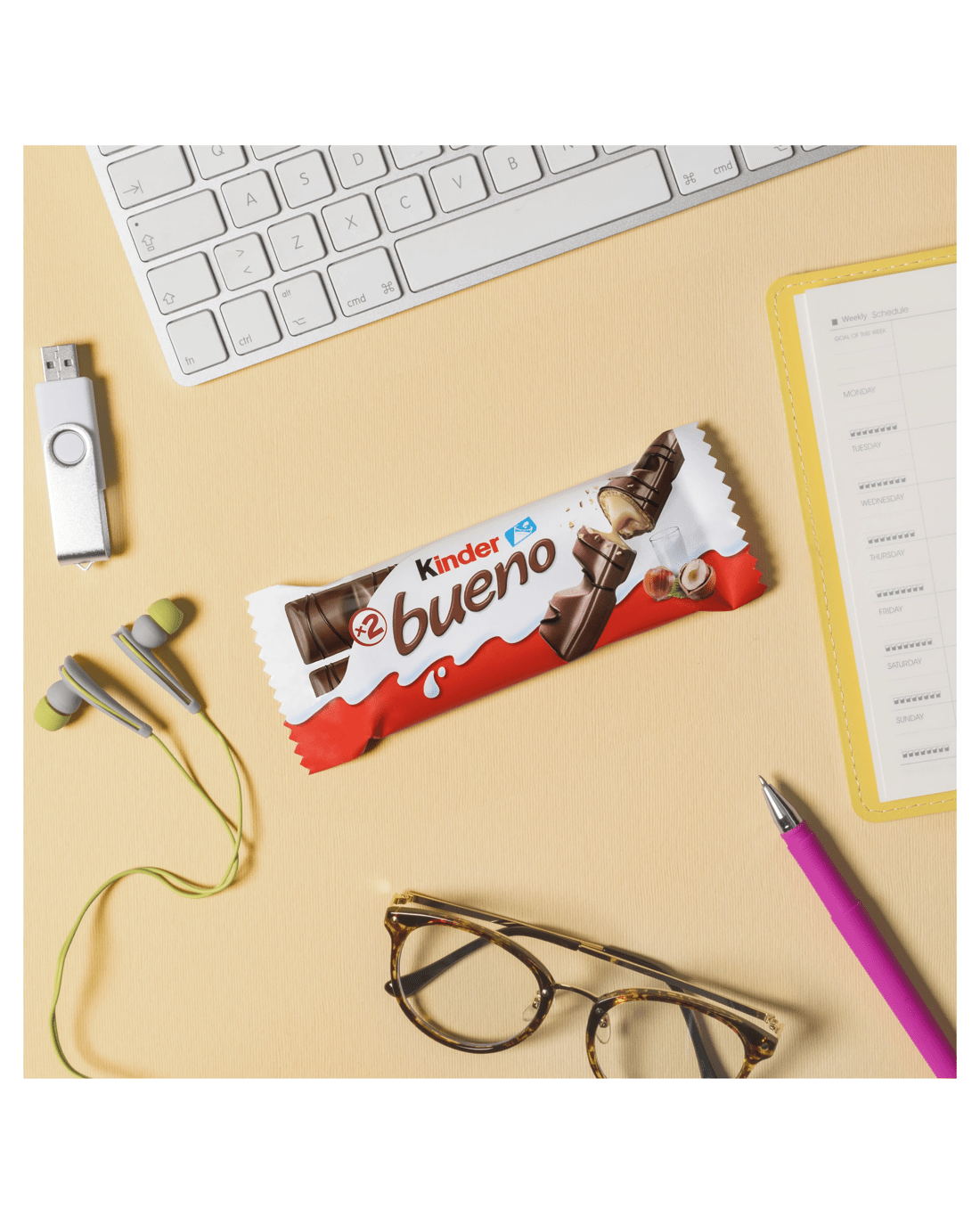 Delicate crispy wafer covered in fine milk chocolate. A burst of luscious creamy filling with hazelnut. Carefully decorated with a dark chocolate drizzle. Each Kinder Bueno single bar is individually wrapped to guarantee quality and freshness.