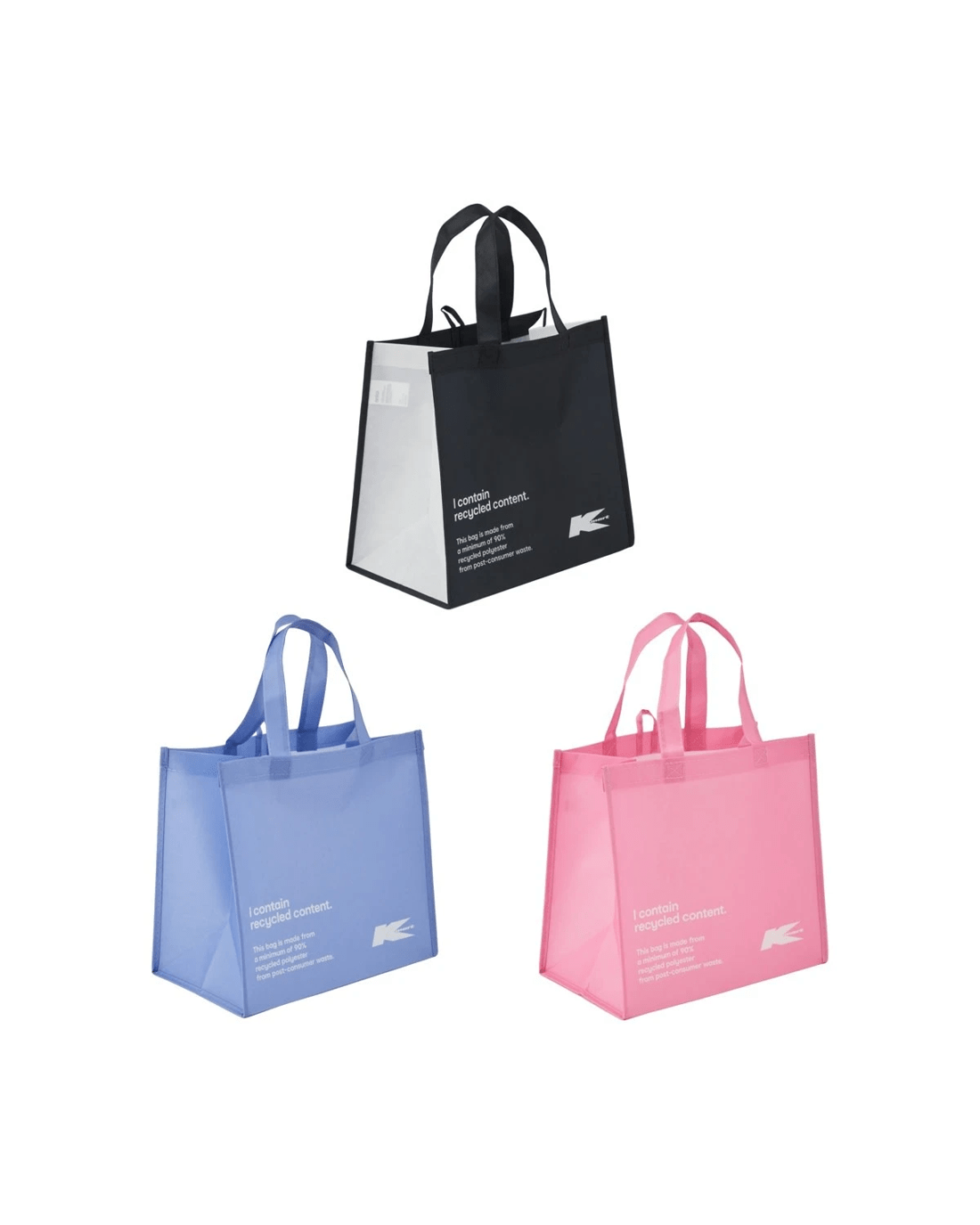 • 'I contain recycled content. This bag is made from a minimum of 90% recycled polyester from post consumer waste' text printed on bag