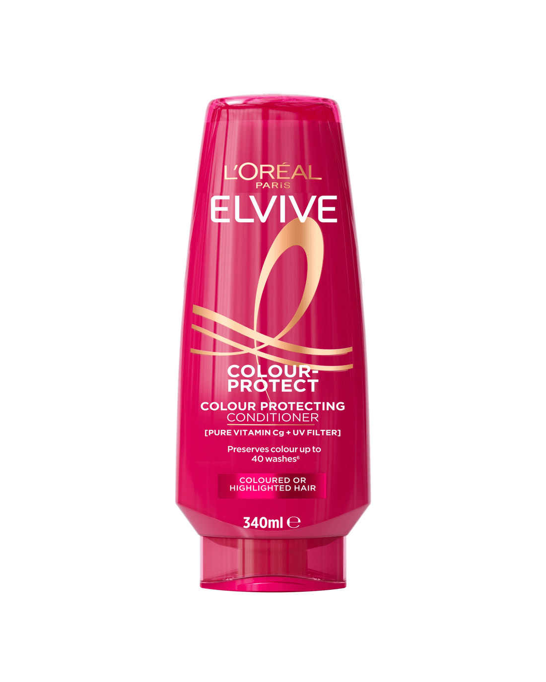 L'Oreal Paris Elvive Colour Protect Conditioner nourishes and preserves coloured hair for up to 40 washes*. Enriched with Vitamin Cg + UV filter to help prolong colour vibrancy and protect the hair fibre against UV aggressions. Because our planet is worth it, this bottle uses up to 20% less plastic** and is made of 100% recycled plastic***.