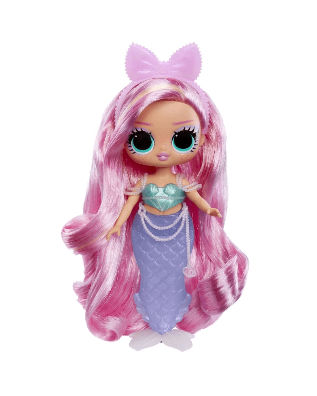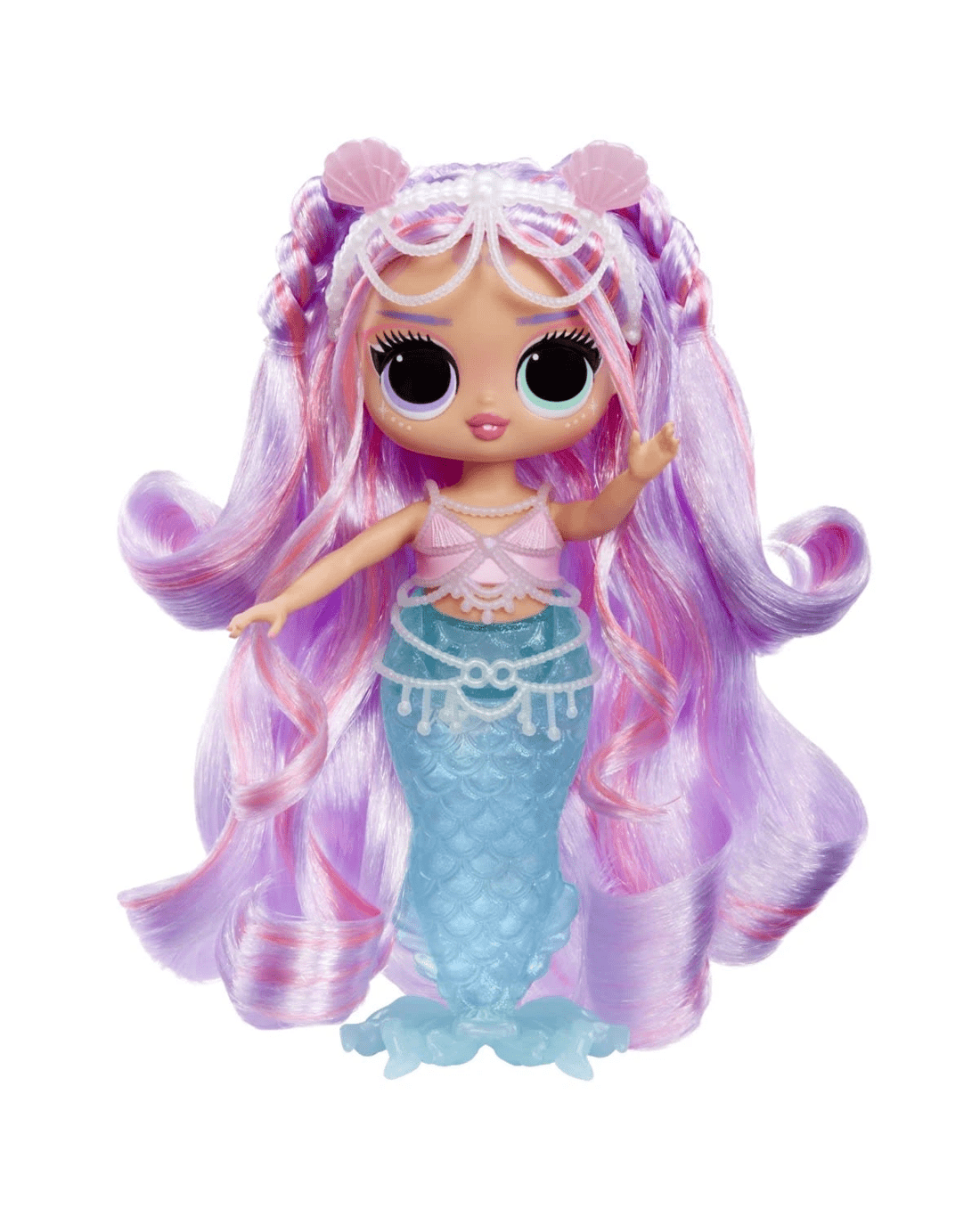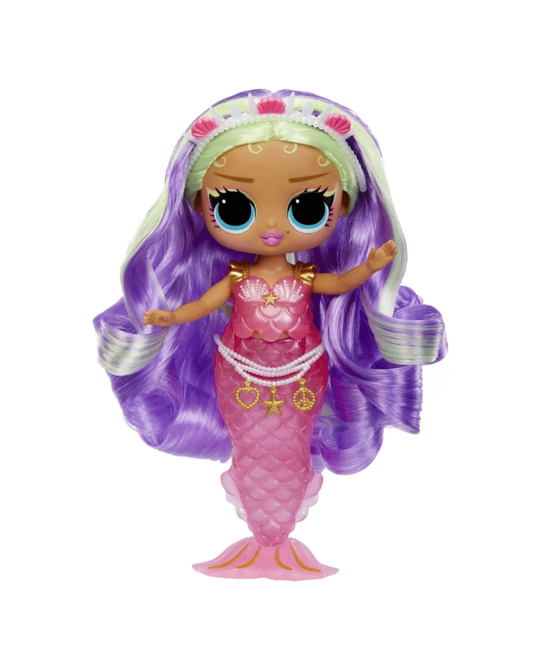 Get ready to dive into an enchanting world of magical mermaid fun with the all-new L.O.L. Surprise! Tweens Mermaid fashion doll with dazzling accessories to unbox! Perfect for bath time and imaginative play, brings a splash of excitement with her beautiful colour-changing tail and mesmerising fin that can move back and forth! Dip your Tweens Mermaid doll into cold water and watch as her tail transforms colours, creating a magical underwater experience! Can you guess why her fin changes colours too? Don't forget to style your doll with her charming accessories including her sea shades, sea shell tiara and cute pearl belt! She has stunning features, gorgeous hair and her own fashionable mermaid look and comes articulated for tons of posing opportunities, including sitting as she bends at her waist! She can even stand on her fin, making styling your doll even easier with greater stability! Discover what's inside each box including a fabulous L.O.L. Surprise! Tweens Mermaid doll, glasses, a headband and a belt to complement the doll's tail! Collect all three glamorous L.O.L. Surprise Tweens Mermaid fashion dolls: Cleo Clove, Lola Waves and Lana Marine for a complete set of endless mermaid fun!