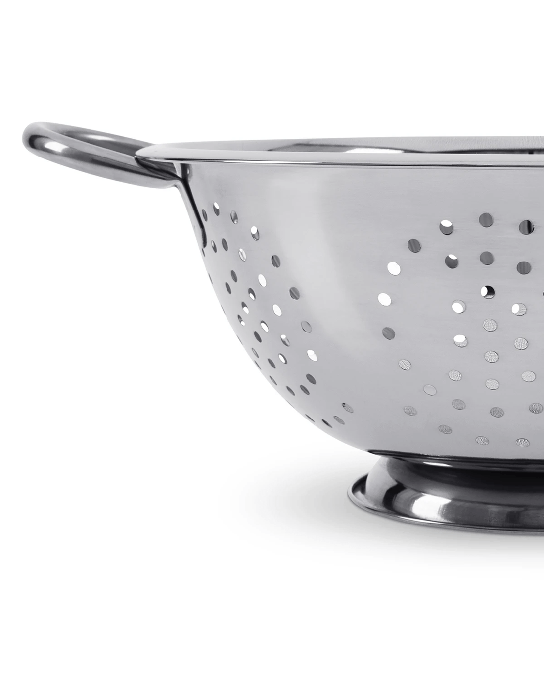 Shiny Mirror Finish: The colander features a polished mirror finish that gives it a clean, reflective look, making it a presentable addition to both modern and classic kitchen spaces.