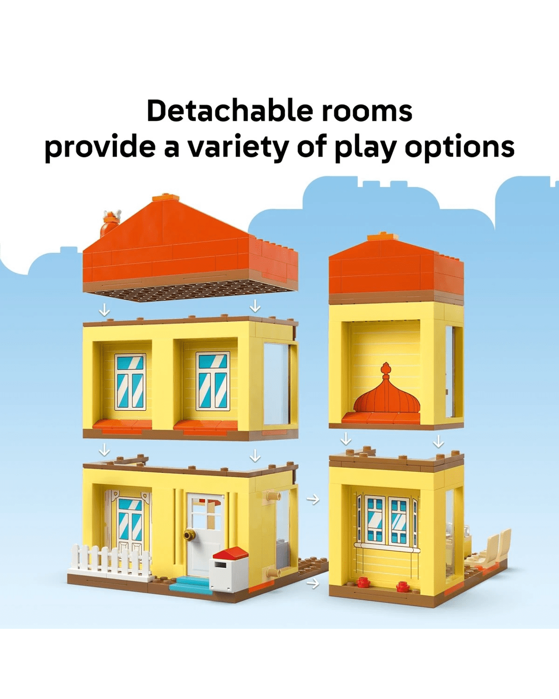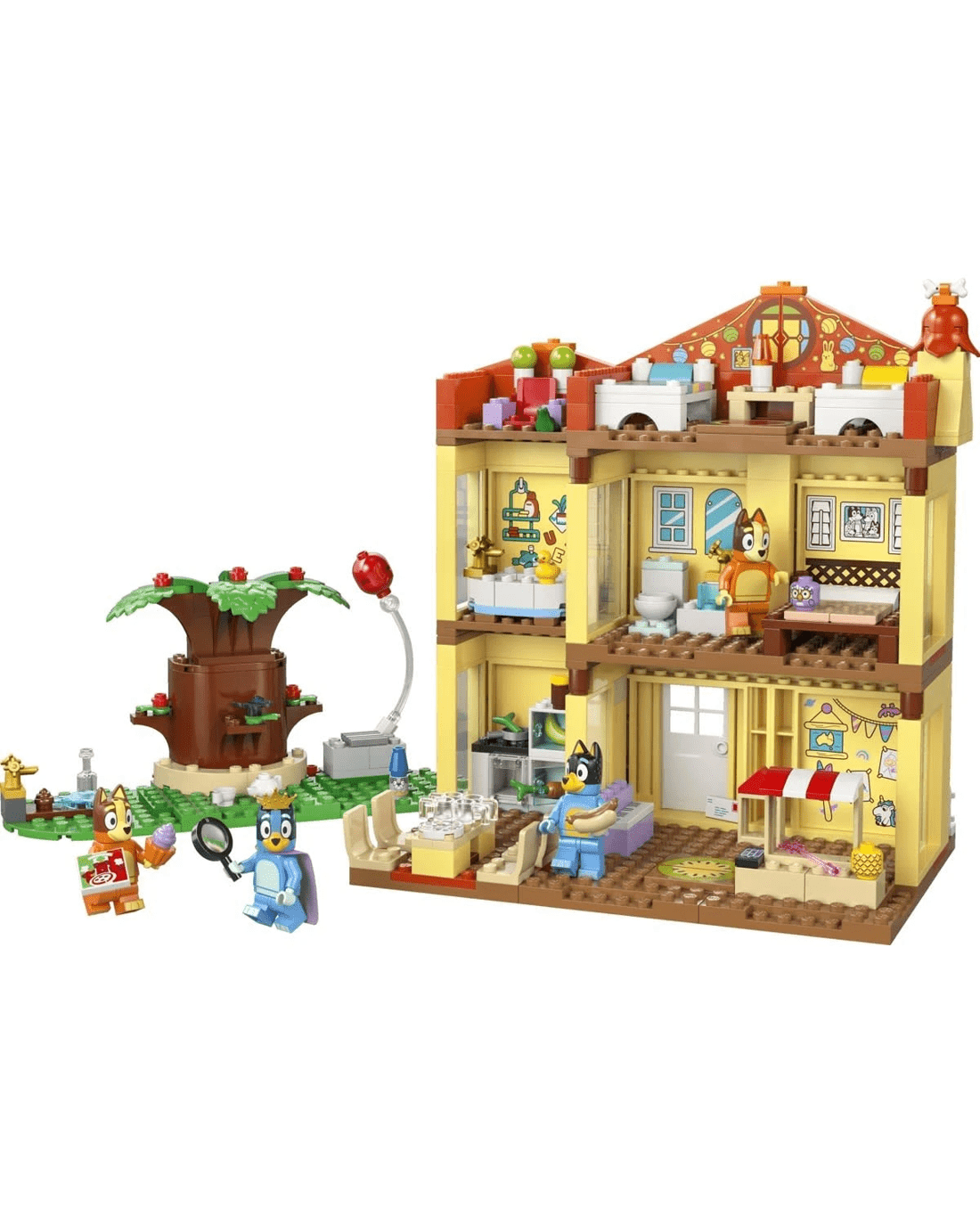 - Pretend-play interactive toy - The modular playhouse and garden has Bluey, Bingo, Mum and Bandit minifigures and detachable rooms: playroom, kitchen, 2 bedrooms, throne room, toilet and bathroom