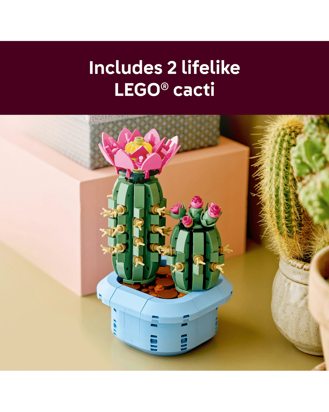 - Build 2 Cacti - Young nature fans can let their creativity flourish as they build 2 LEGO cacti: a larger cactus in full bloom and a smaller cactus with buds in different stages