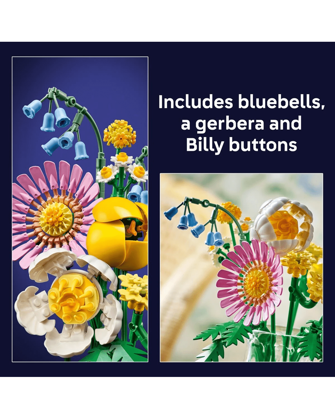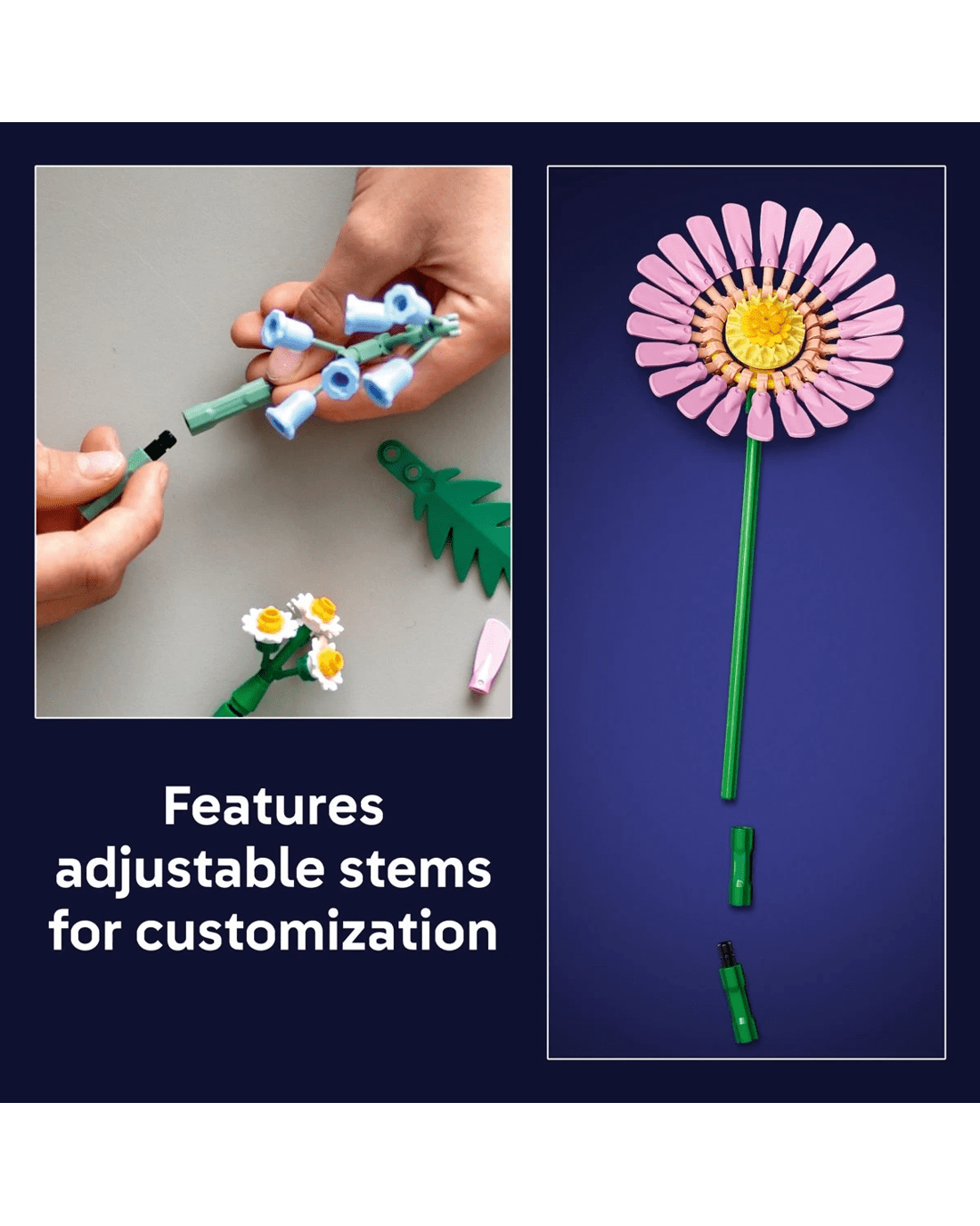 - Adjustable stems - Features adjustable stems that encourage builders to get creative and customise their own bouquet