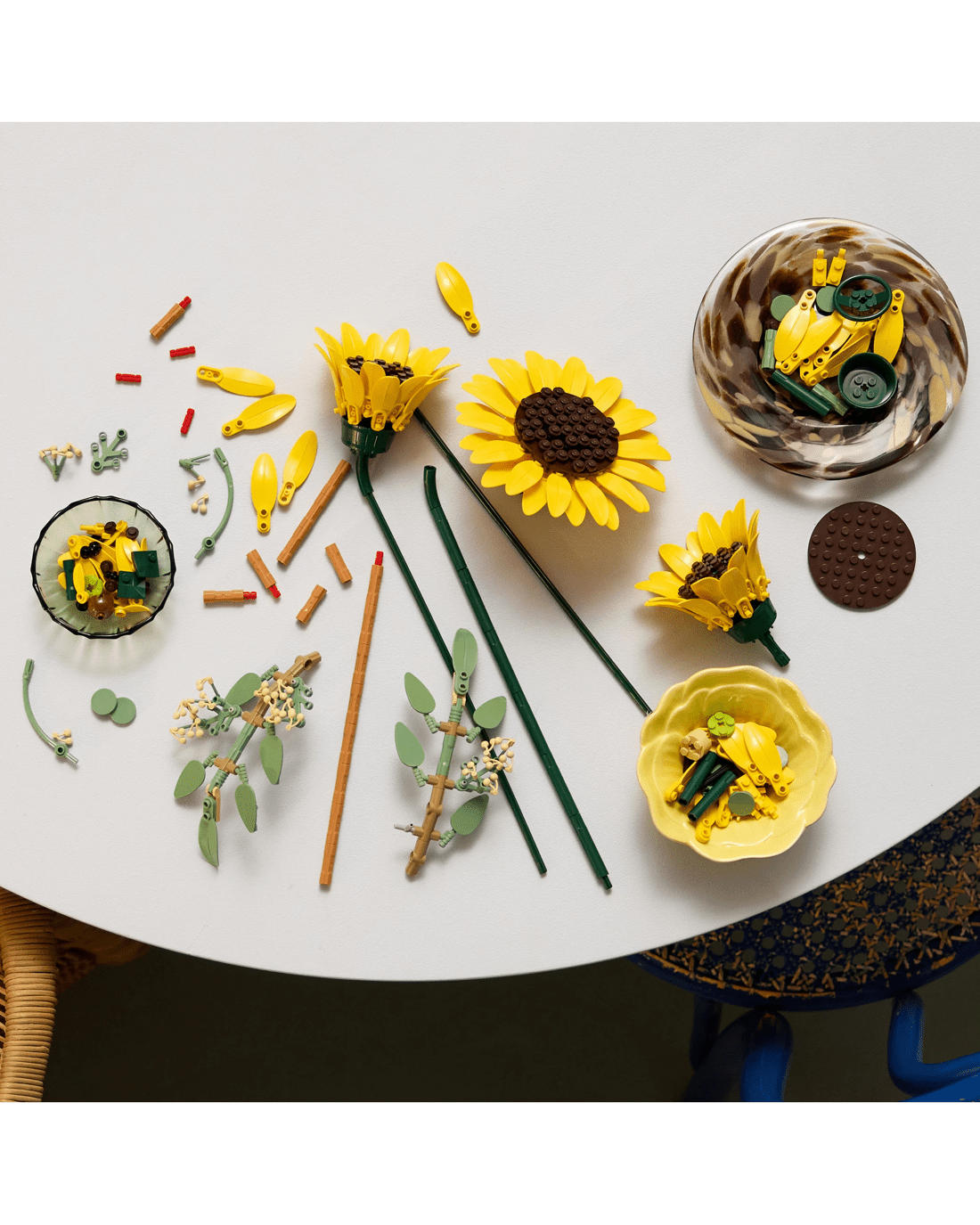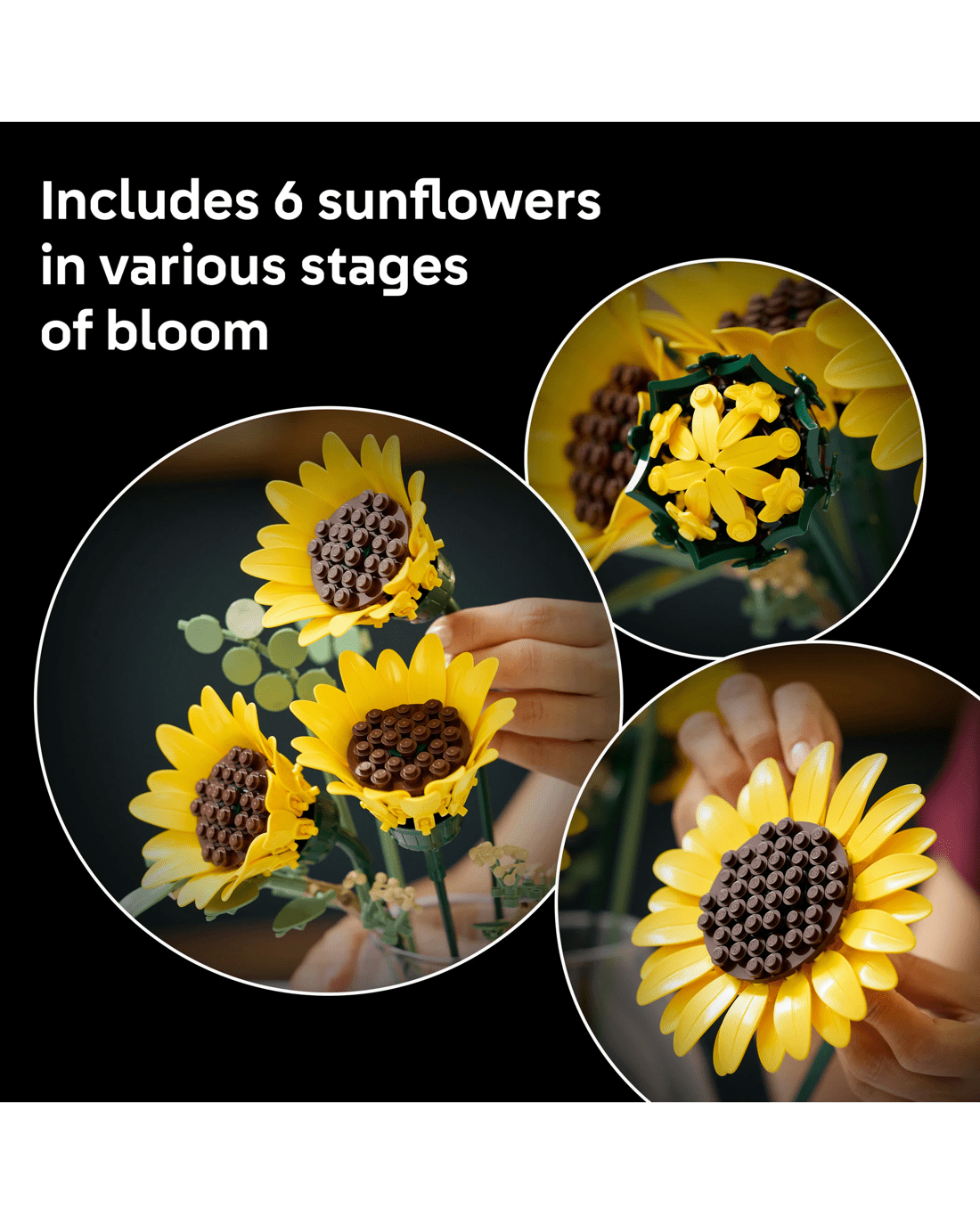 - LEGO Sunflowers - The bouquet includes 6 sunflowers in various stages: 1 sunflower bud, 3 sunflowers beginning to bloom and 2 big fully opened sunflowers