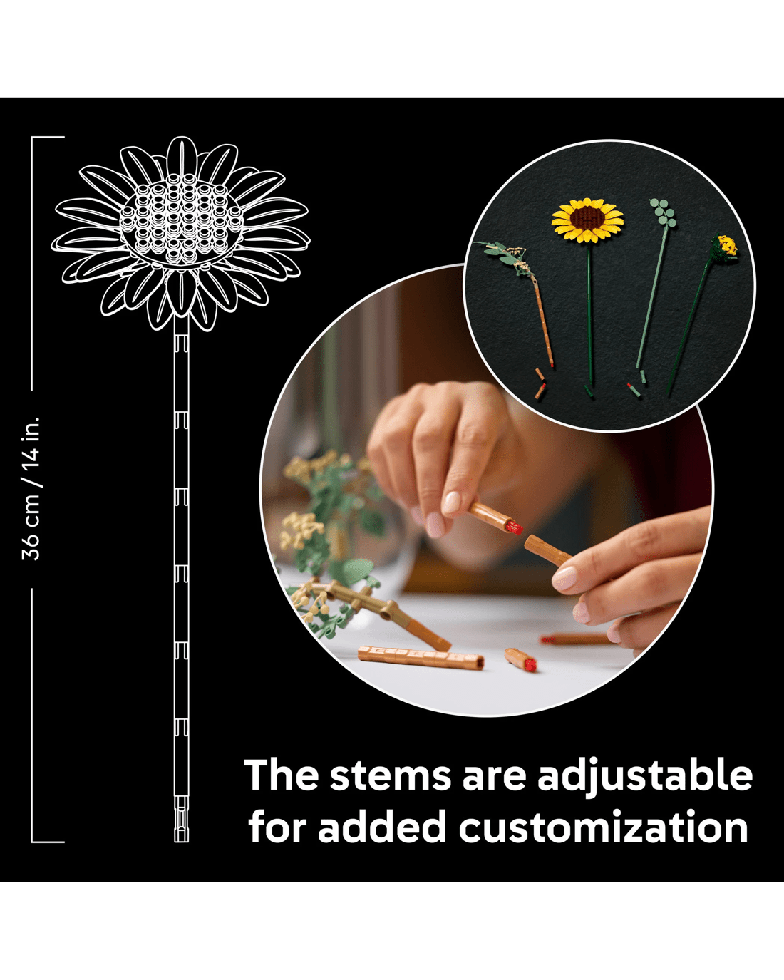 - Flower Decor - When the bouquet is complete, it can be displayed as sunflower decor in any room or office or combined with other LEGO Botanicals sets (sold separately) to make a large floral display