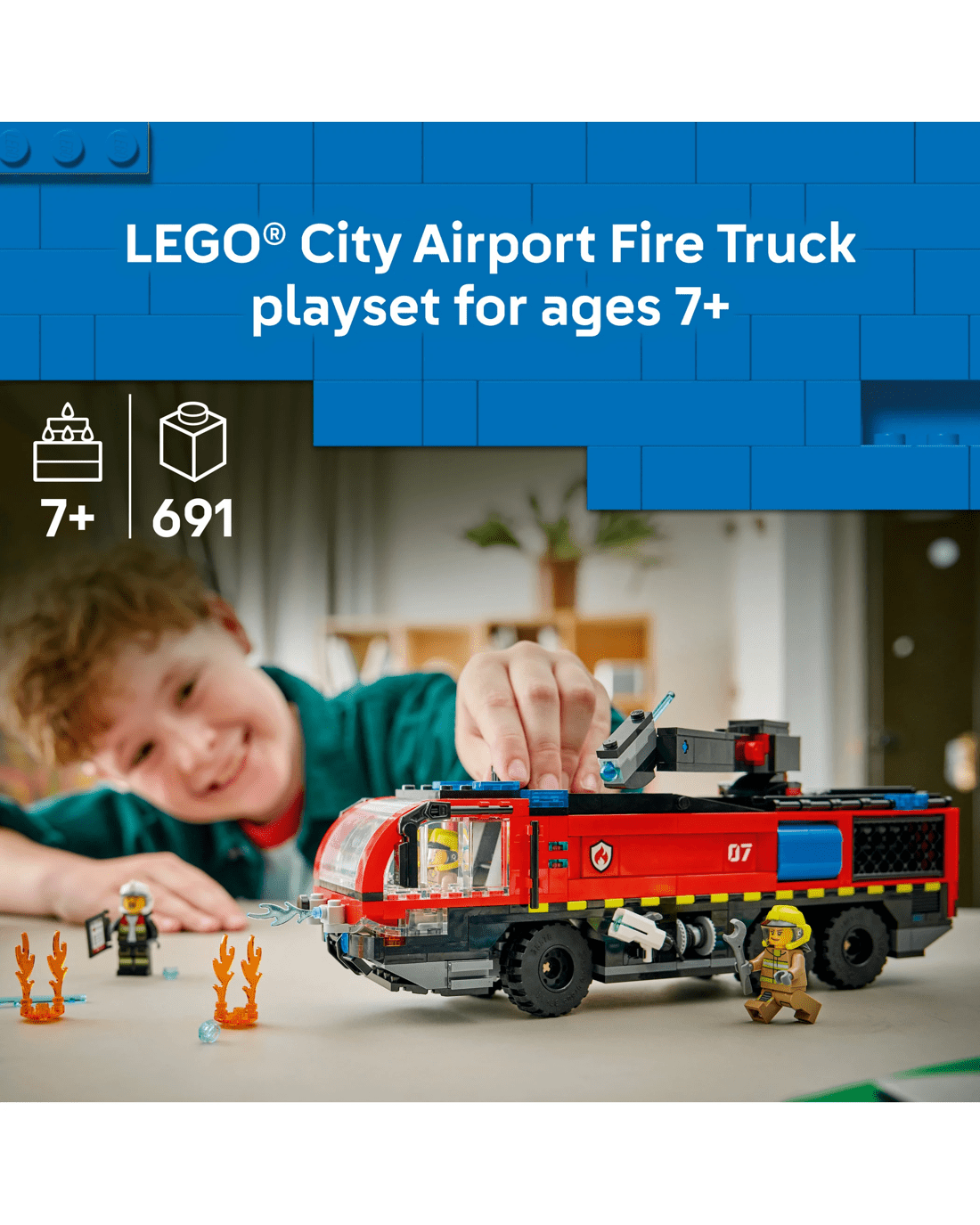 - Dimensions- The airport fire engine in this 691-piece LEGO building set measures over 11cm high, 31cm long and 8cm wide