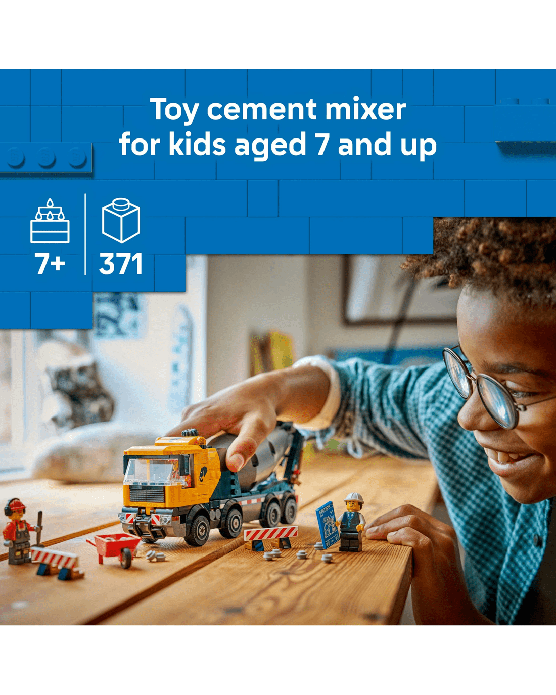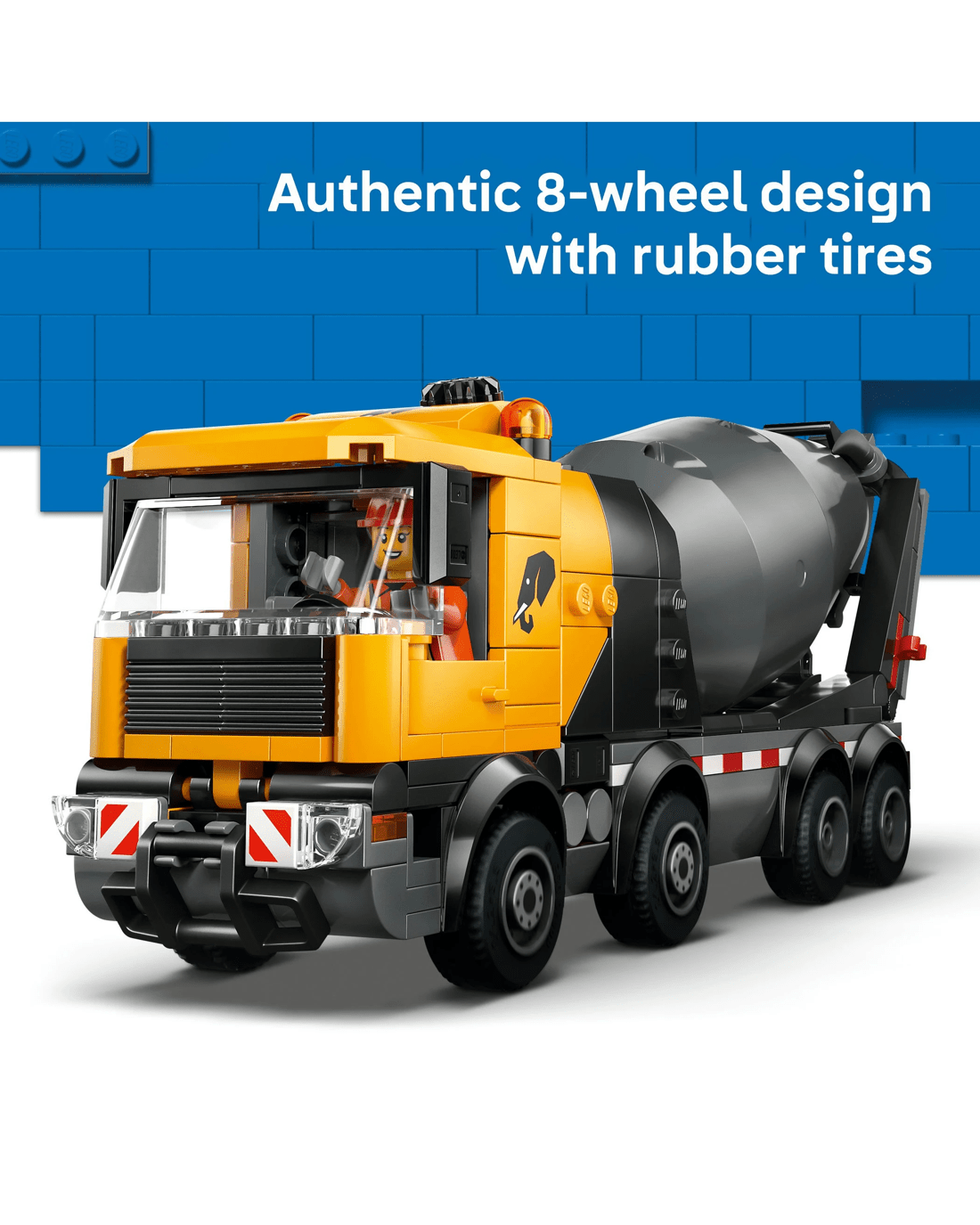 - What's in the Box - Includes everything kids need to build a toy cement mixer truck with a revolving drum and 8 rubber tyres, plus 3 construction worker minifigures for imaginative play
