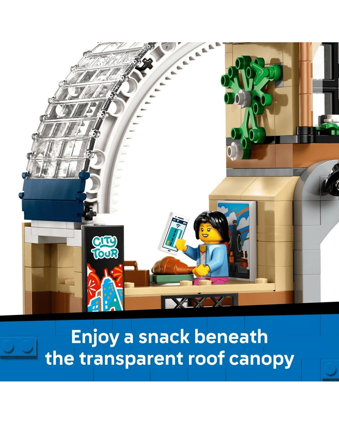 - LEGO minifigure accessories - This set comes with LEGO minifigure accessories for pretend play, including a toy phone, ticket, croissant and cup