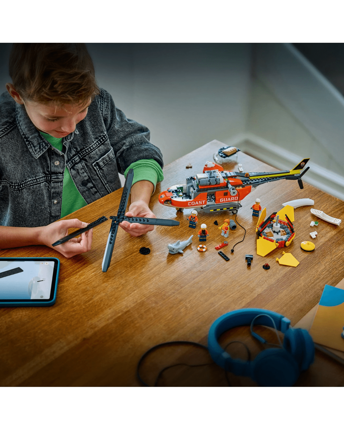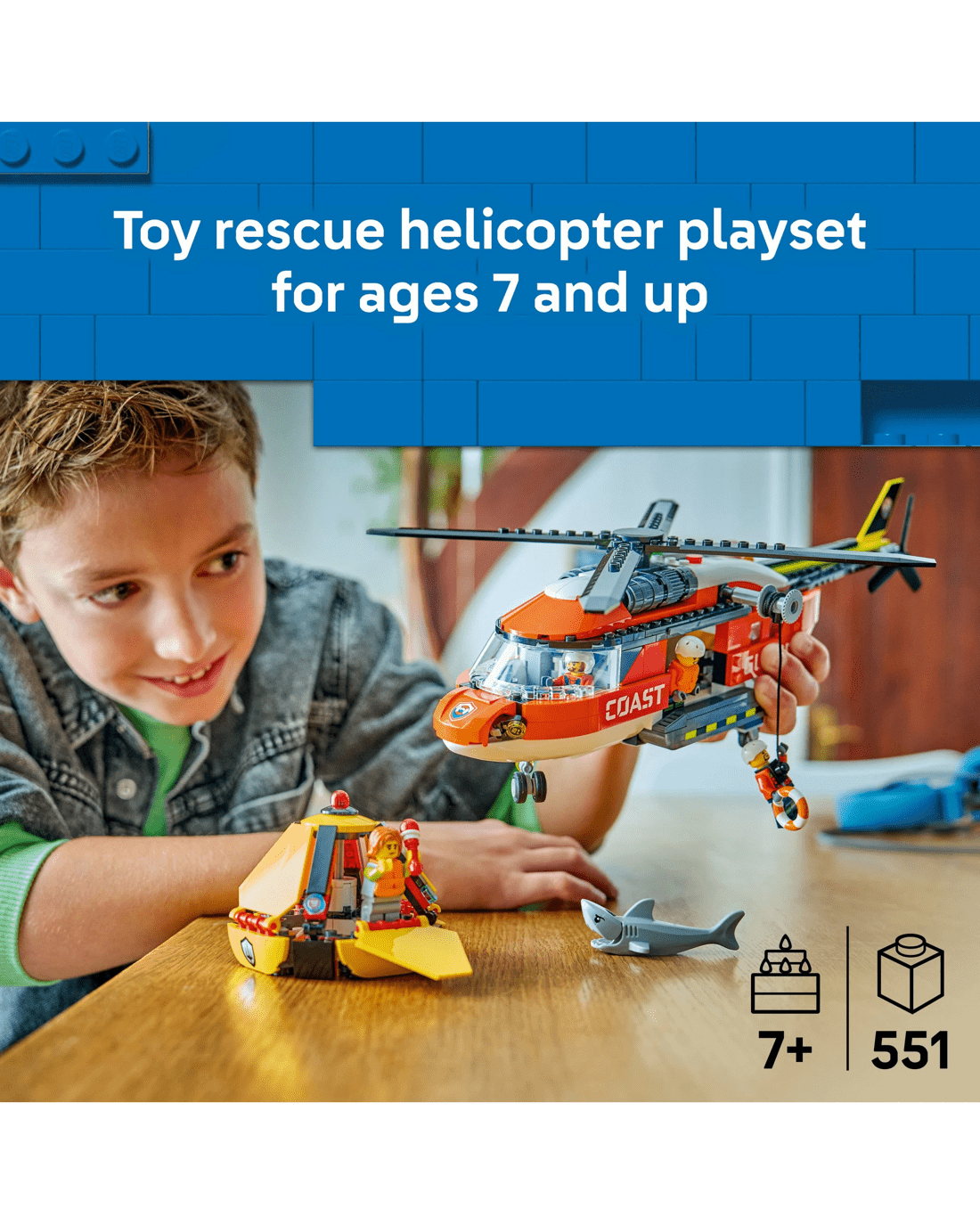 - Rescue Helicopter Toy Playset - Exciting search and rescue adventures await with the LEGO City Coast Guard Helicopter building kit for kids