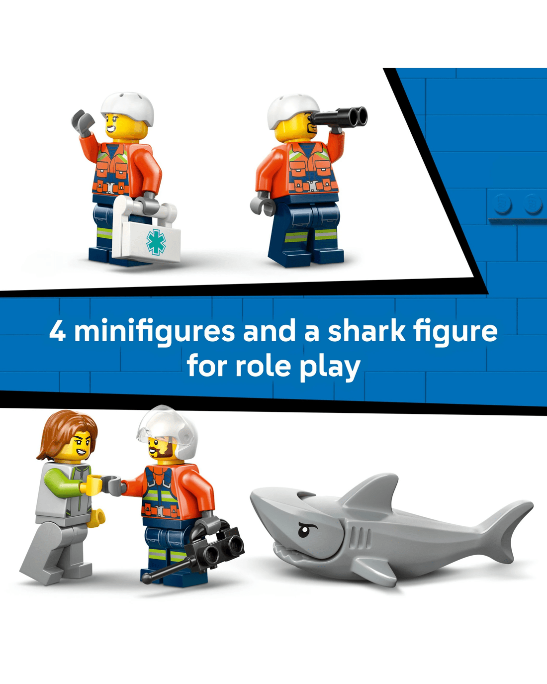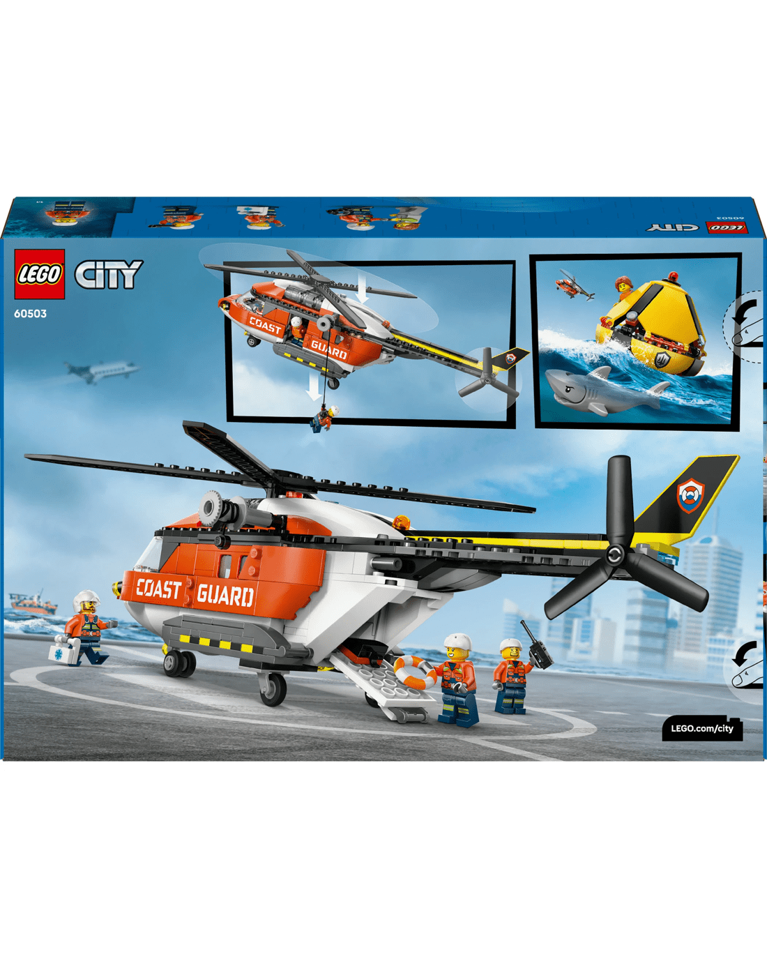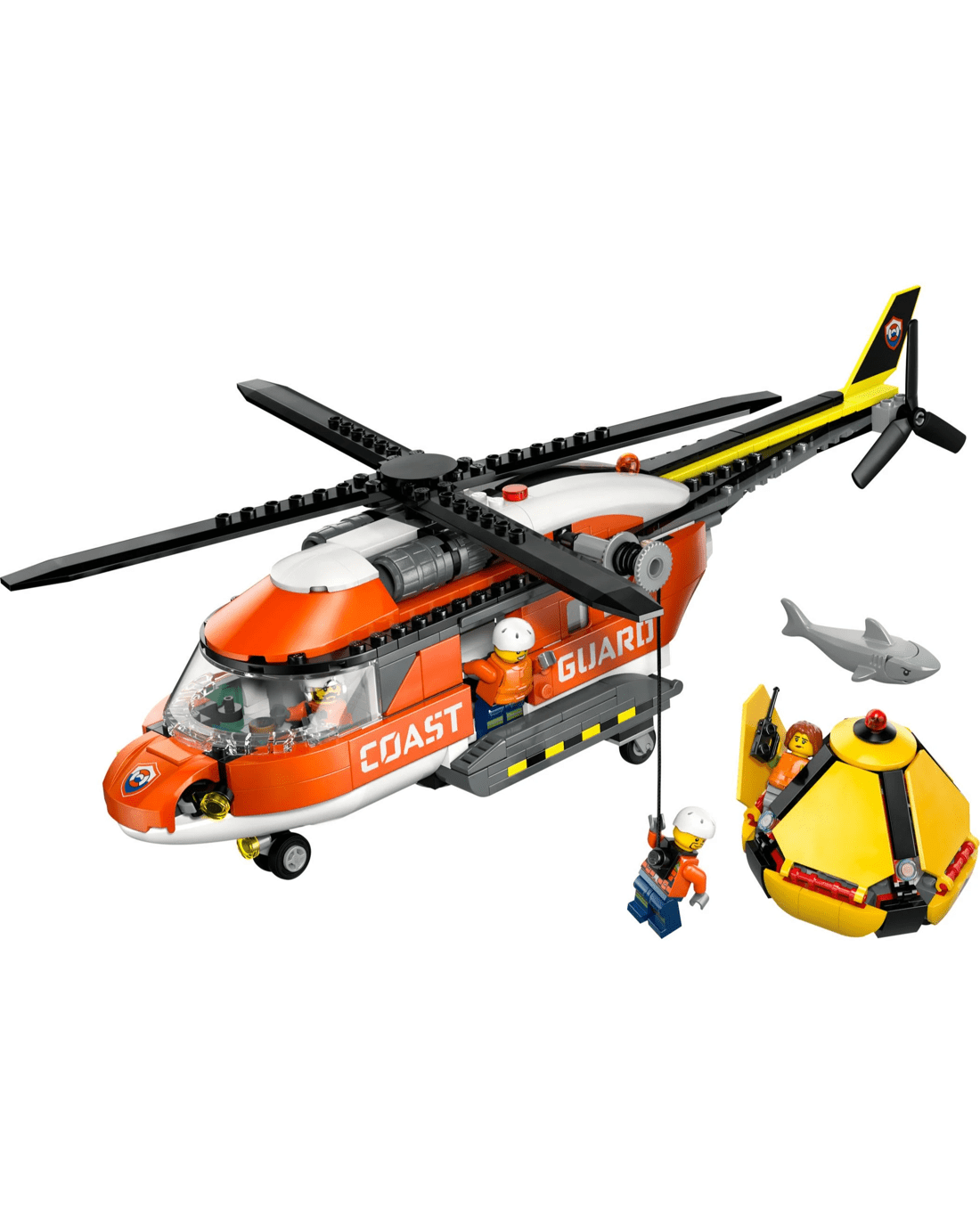 - What's in the Box - Includes everything kids need to build a detailed sea rescue helicopter toy, rescue capsule, plus pilot, civilian and 2 coast guard minifigures and a shark figure