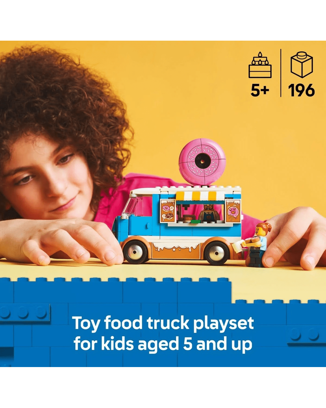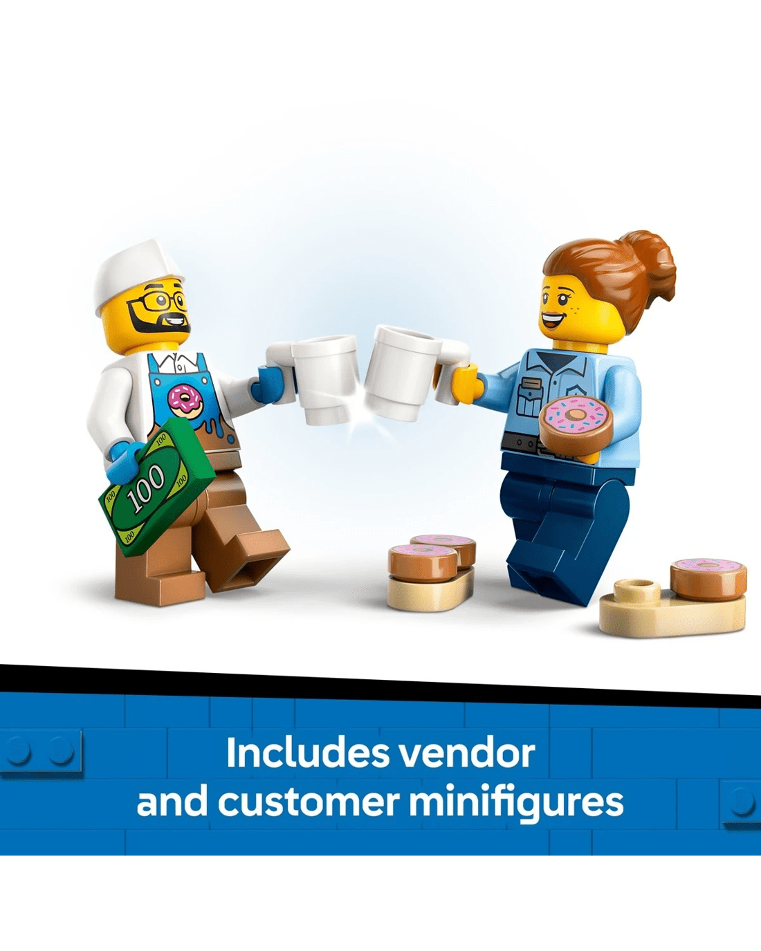 - What's in the box? - This vendor truck playset comes with everything kids need to create a toy doughnut truck with a detachable kiosk, plus seller and customer minifigures and an array of accessories