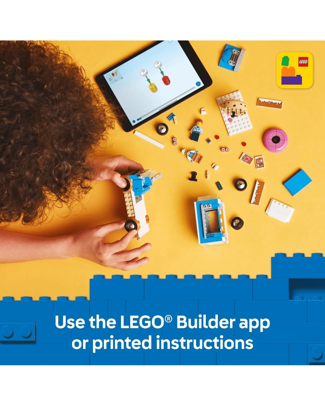 You'll find building instructions for the mobile LEGO doughnut shop in the box. Or you can visit the LEGO Builder app where kids can explore and save sets, track their own building progress, and zoom in and rotate to view models from all angles as they build. LEGO City Great Vehicles playsets deliver feature-rich land, air and water toys for imaginative play without limits. Kids can add this toy doughnut truck to other sets (sold separately) from the LEGO City range for even bigger adventures!