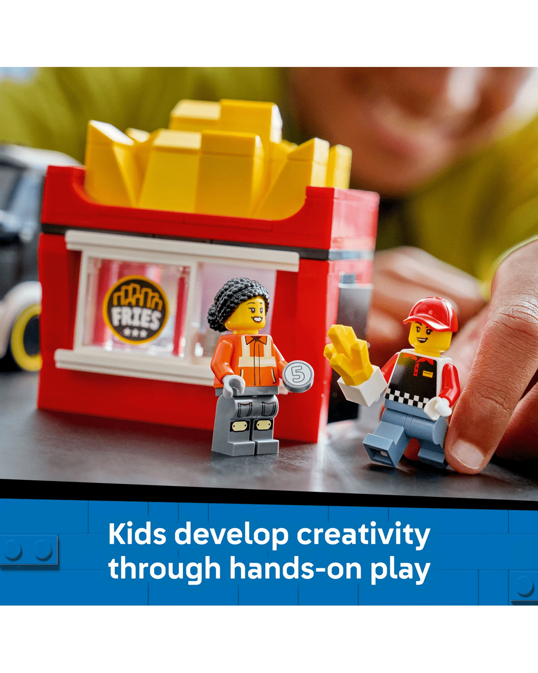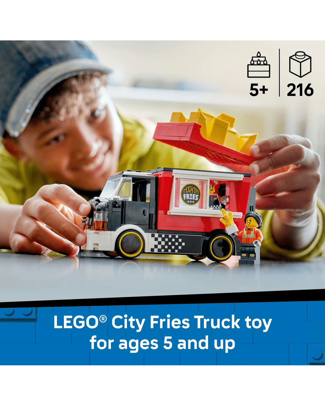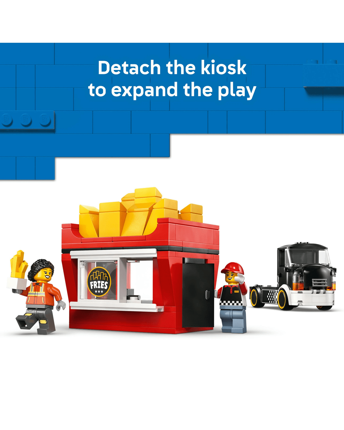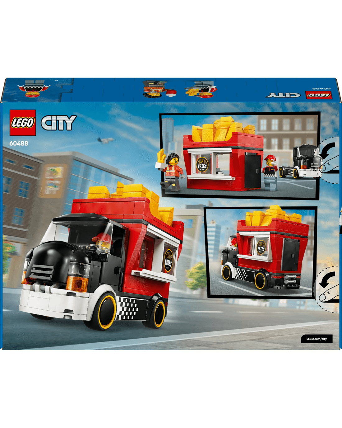 - What' in the Box? - Includes everything kids need to build the LEGO City Fries truck toy, plus vendor and customer minifigures and accessories