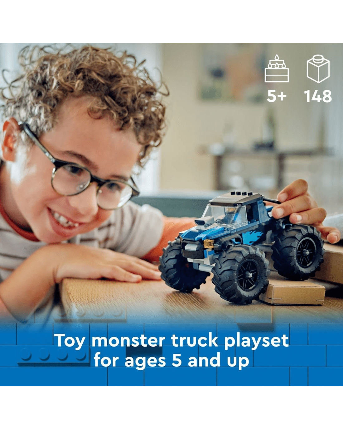 - Monster truck building set - Kids can perform awesome driving displays with this LEGO City Blue Monster Truck toy playset for off-road action