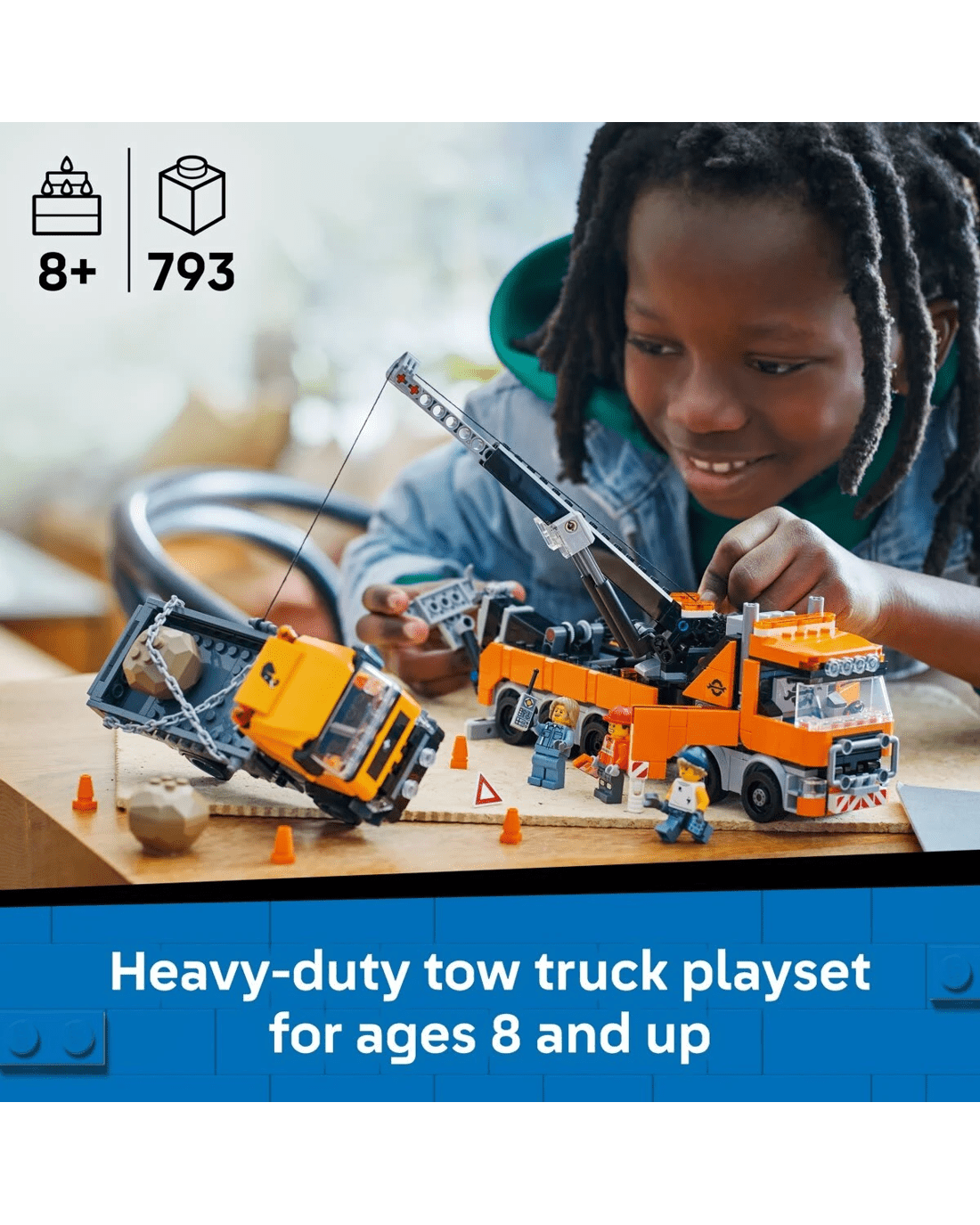 LEGO City Great Vehicles playsets deliver feature-rich land, air and water toys for imaginative play without limits. Kids can add this recovery vehicle playset to other sets (sold separately) from the LEGO City range to expand their world of play. Set contains 793 pieces.