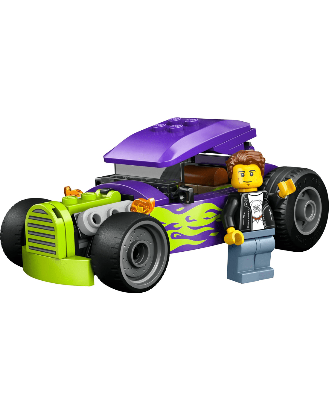 Young race car lovers can buckle up for high-speed drag racing action with the LEGO City Hot Rod car toy. This model car building kit packs big thrills with detailed racing features including oversized rear tyres, a driver cockpit with a lift-up roof, and a cool purple colour scheme with neon green flames. Just add the driver minifigure for fast-paced pretend play.