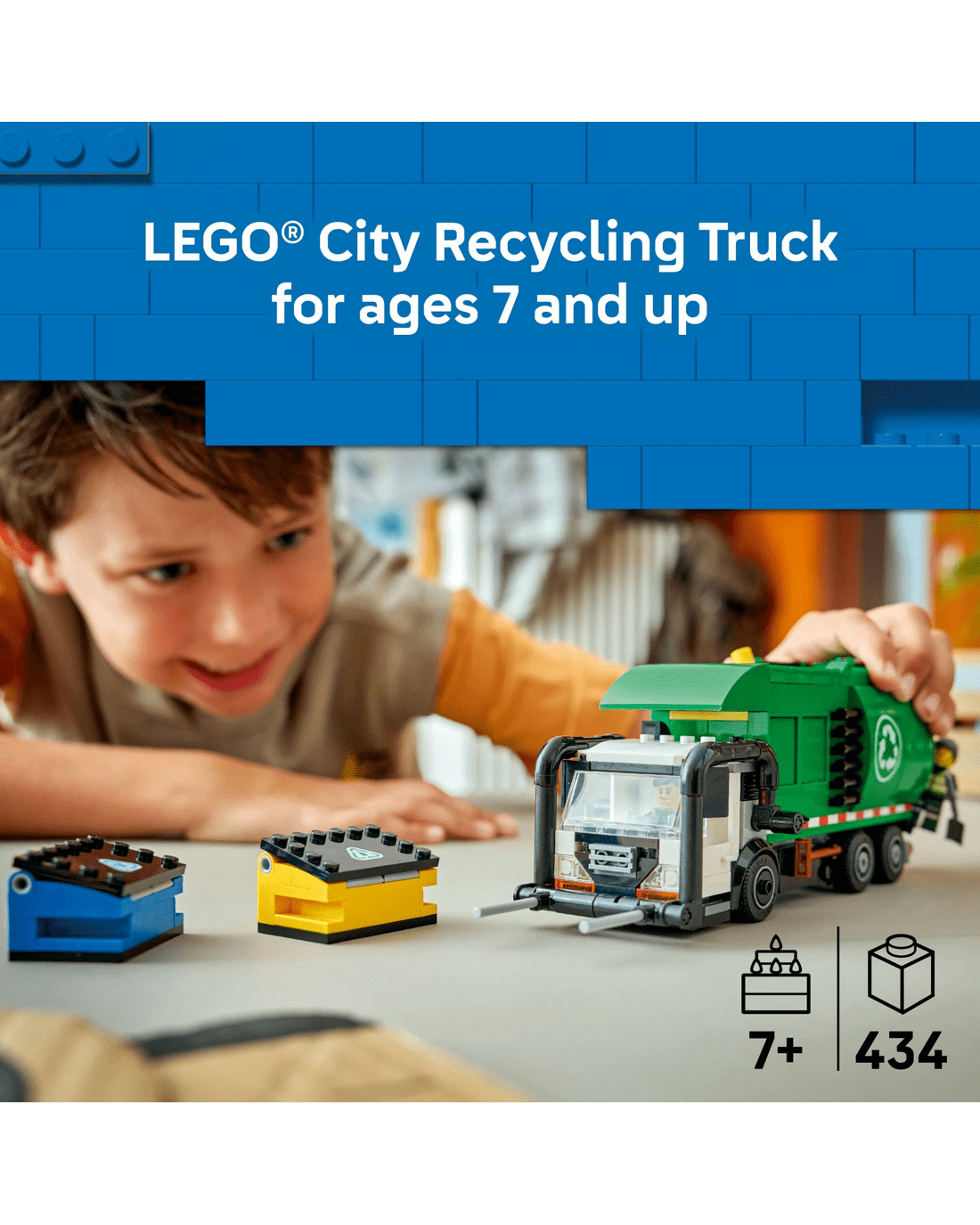 With this LEGO Recycling Truck playset, kids can enjoy intuitive building with the LEGO Builder app, zooming and rotating with 3D instructions while saving and tracking progress as they build - all from the app. Set contains 434 pieces.