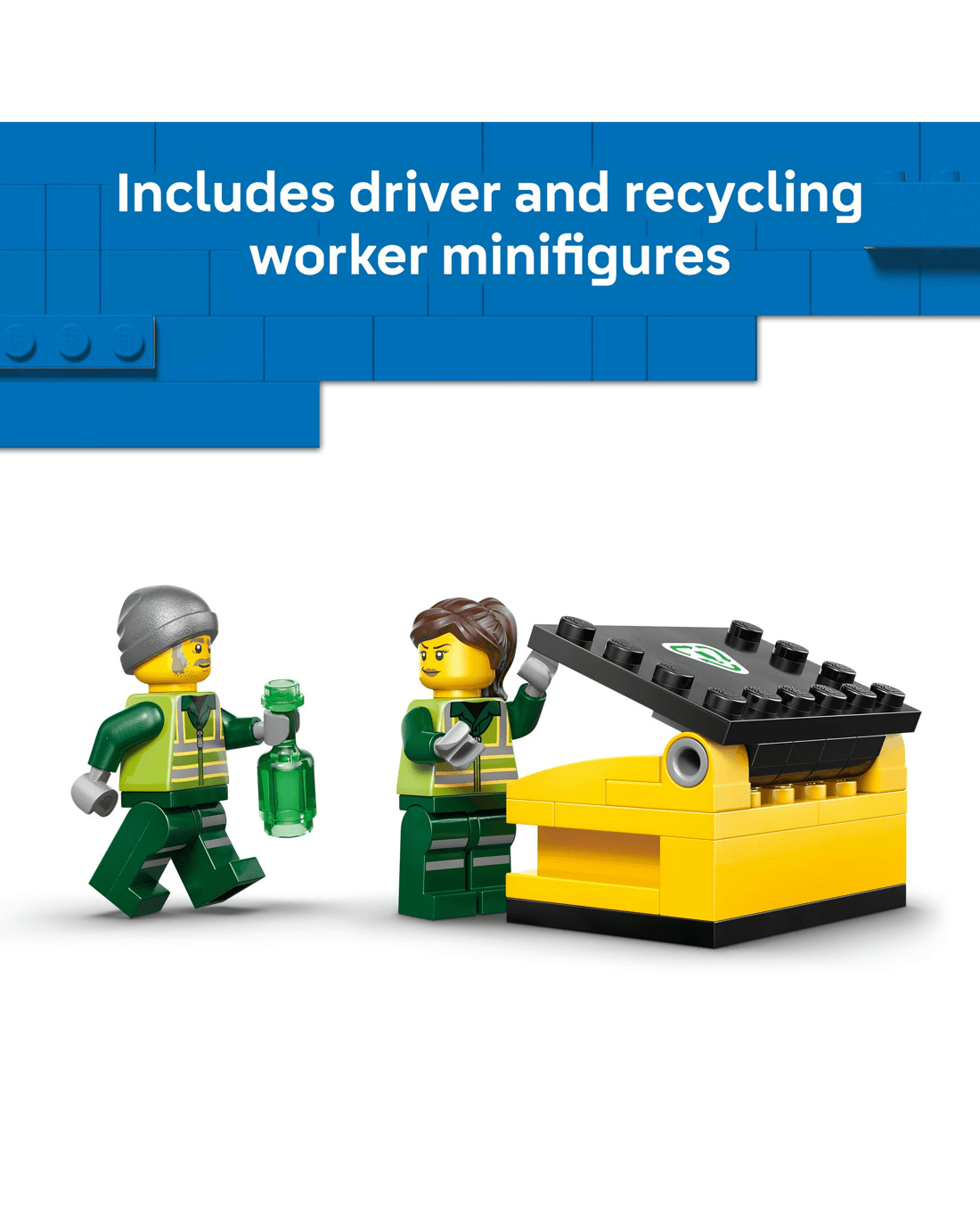 - Toy Truck For Recycling Play - Kids can enjoy hours of fun with the LEGO City Recycling Truck featuring realistic details and functions that bring recycling adventures to life